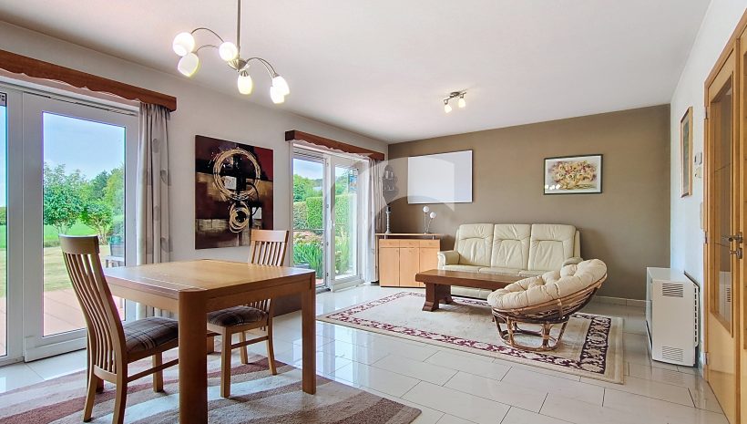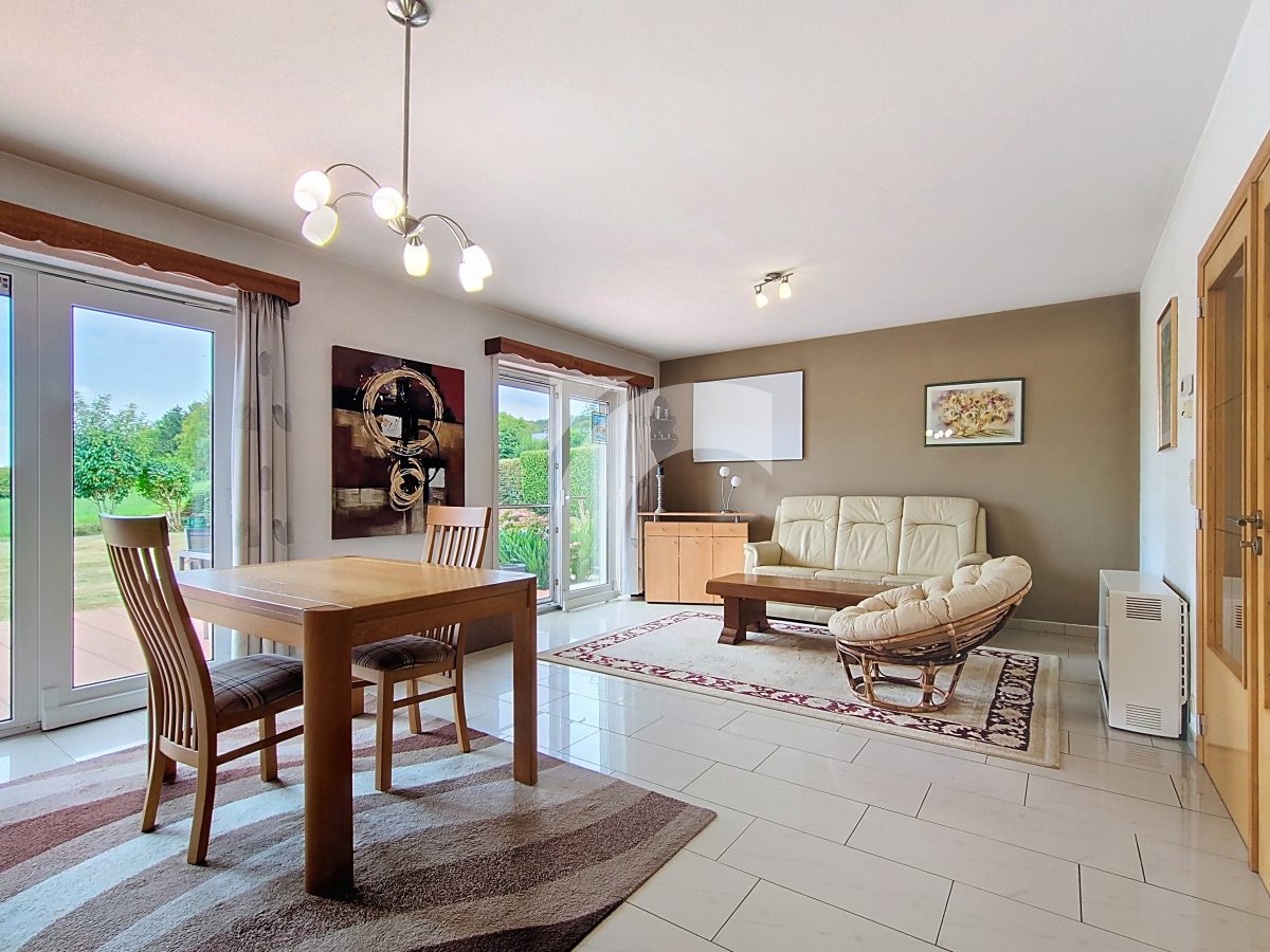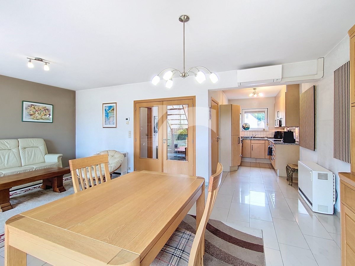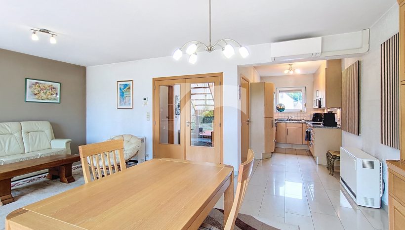 GEMMENICH – route des 3 Bornes, 39: Wir freuen uns, Ihnen dieses angenehme Haus, in naturnaher Umgebung und nur einen Katzensprung vom Dreiländereck entfernt, vorstellen zu dürfen. Die Grundstücksfläche mit einem gut ausgerichteten Garten beträgt ± 454 m². Einmal durch die Eingangstür hindurch, finden Sie eine lichtdurchflutete und helle Einrichtung vor. Das Haus umfasst einen Eingangsbereich, ein helles Wohnzimmer mit offener Einbauküche und direktem Zugang zur schönen Terrasse, ein separates WC, eine Waschküche und die an das Haus angebaute Abstellräume sowie Garage. 3 Schlafzimmer, ein Badezimmer und ein Dachboden vervollständigen das Obergeschoss. Doppelverglaste PVC-Fenster mit Rolladen, eine Photovoltaikanlage (±7.000 kWh/Jahr), Elektroheizung und Klimaanlage sind vorhanden. Zögern Sie nicht, sich mit unserer Agentur in Verbindung zu setzen, um diese charmante Immobilie zu entdecken.