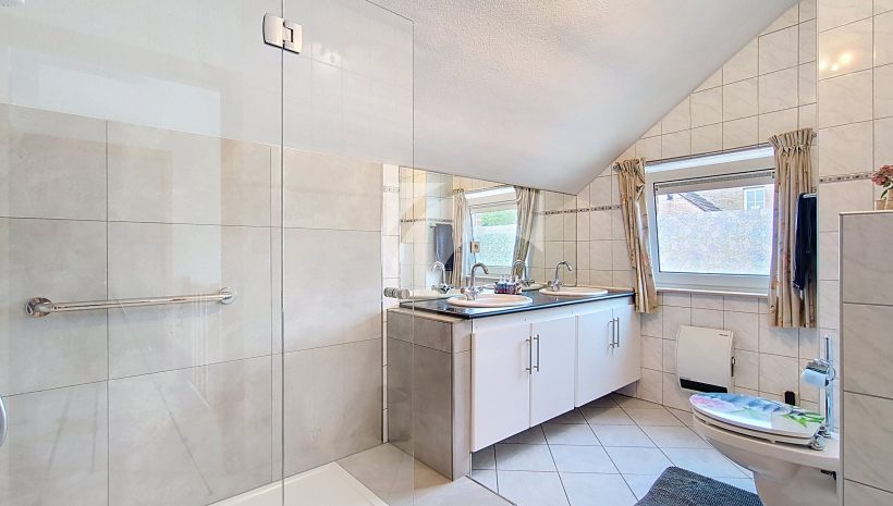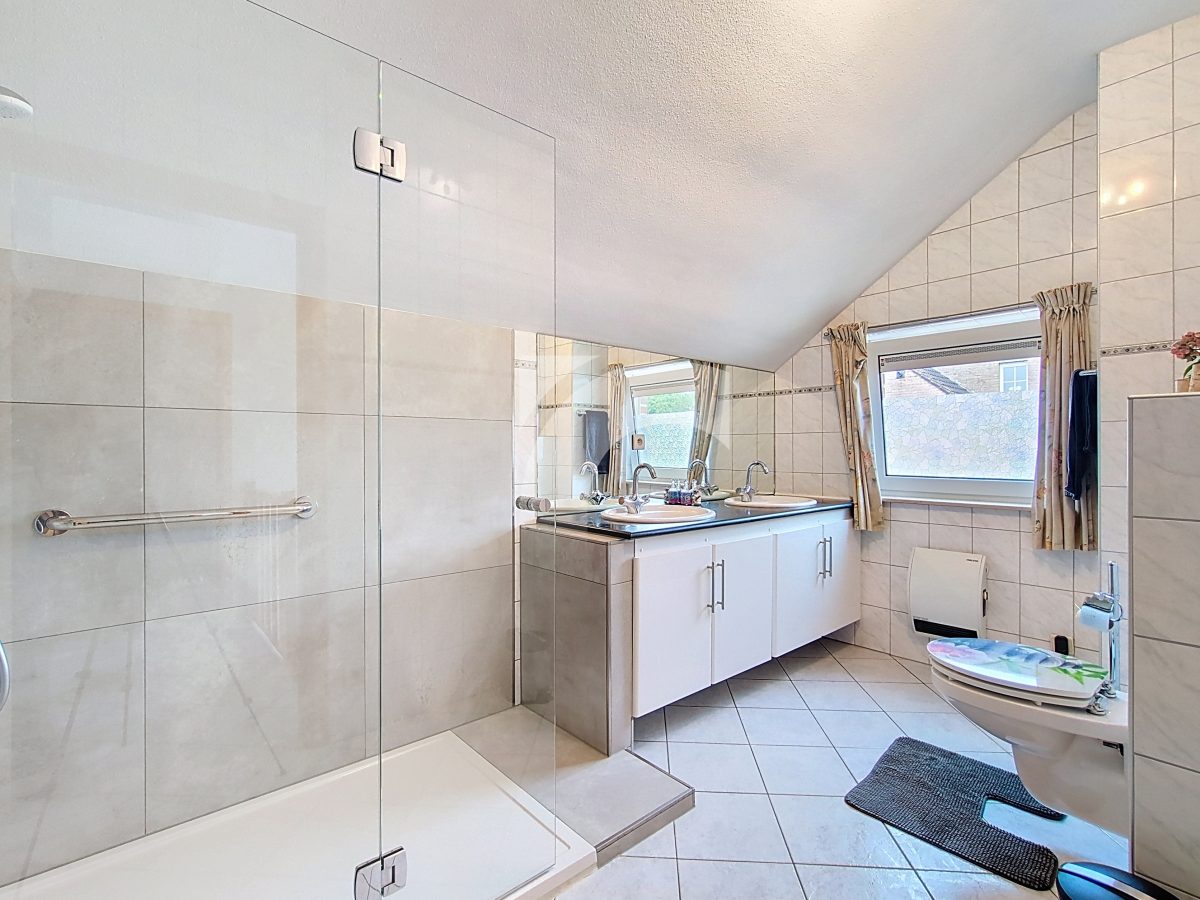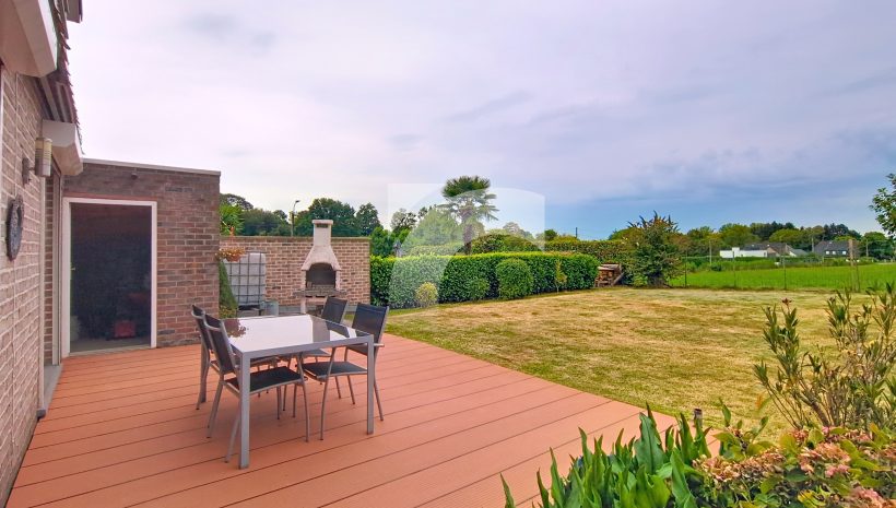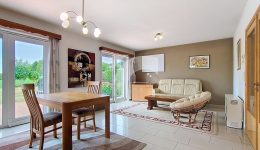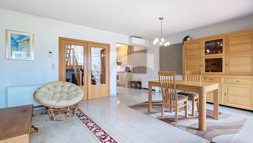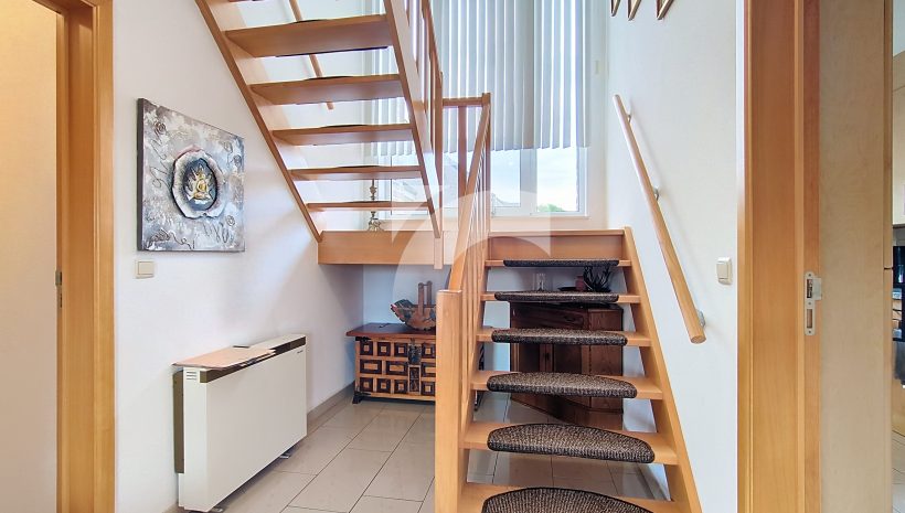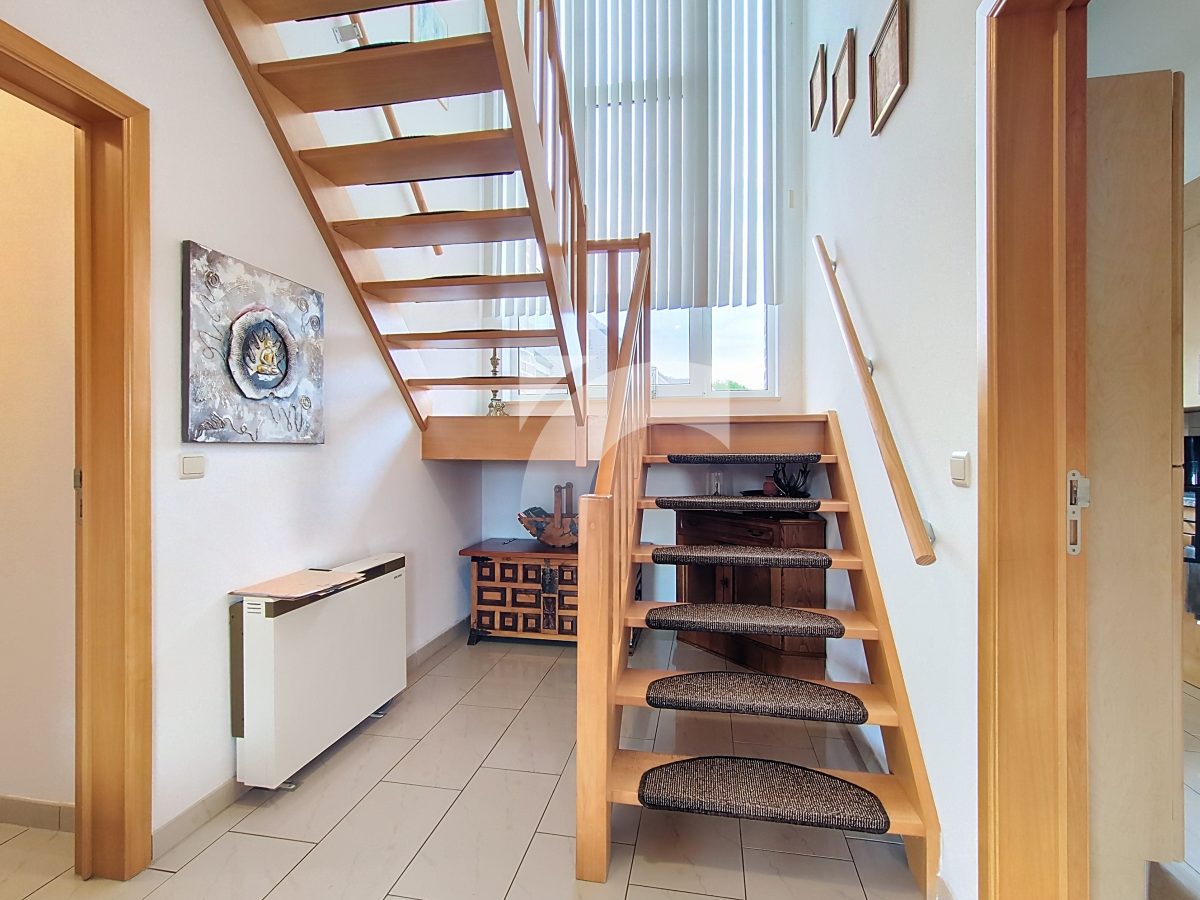 GEMMENICH – route des 3 Bornes, 39: Wir freuen uns, Ihnen dieses angenehme Haus, in naturnaher Umgebung und nur einen Katzensprung vom Dreiländereck entfernt, vorstellen zu dürfen. Die Grundstücksfläche mit einem gut ausgerichteten Garten beträgt ± 454 m². Einmal durch die Eingangstür hindurch, finden Sie eine lichtdurchflutete und helle Einrichtung vor. Das Haus umfasst einen Eingangsbereich, ein helles Wohnzimmer mit offener Einbauküche und direktem Zugang zur schönen Terrasse, ein separates WC, eine Waschküche und die an das Haus angebaute Abstellräume sowie Garage. 3 Schlafzimmer, ein Badezimmer und ein Dachboden vervollständigen das Obergeschoss. Doppelverglaste PVC-Fenster mit Rolladen, eine Photovoltaikanlage (±7.000 kWh/Jahr), Elektroheizung und Klimaanlage sind vorhanden. Zögern Sie nicht, sich mit unserer Agentur in Verbindung zu setzen, um diese charmante Immobilie zu entdecken.