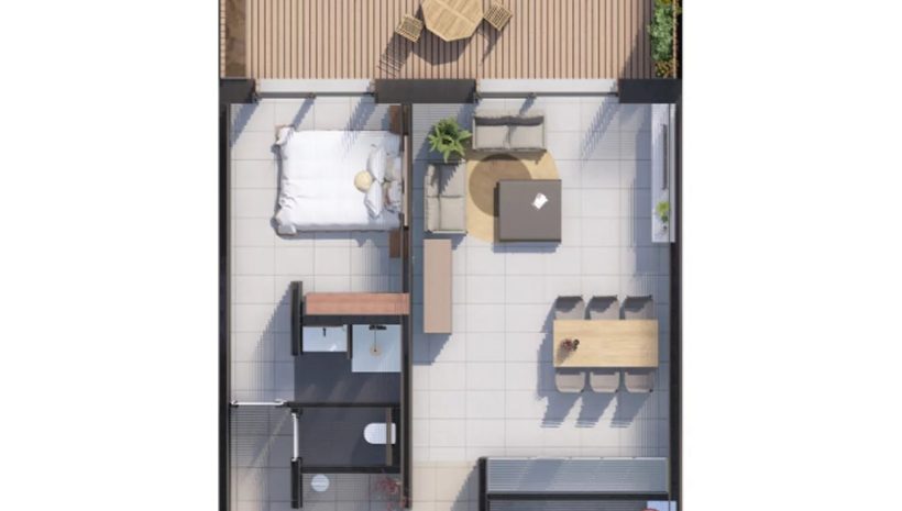 Flur 1,60 m² – Wohnzimmer 26,10 m² – Küche 3,60 m² – HWR 4,20 m² – Schlafzimmer 01 : 13 m²- Badezimmer 2,60 m²- WC 1,60 m²