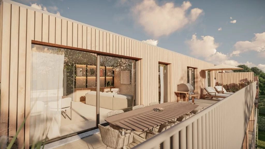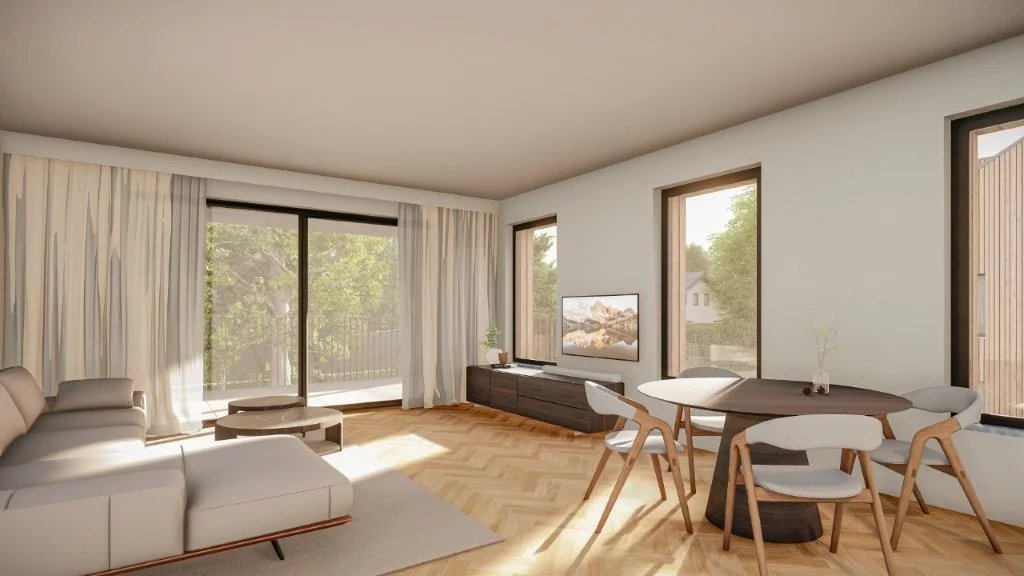 Schlafzimmer: 2 Bäder: 2 Wohnfläche: 114 m² Heizung: Wärmepumpe Fußbodenheizung Baujahr: 2025