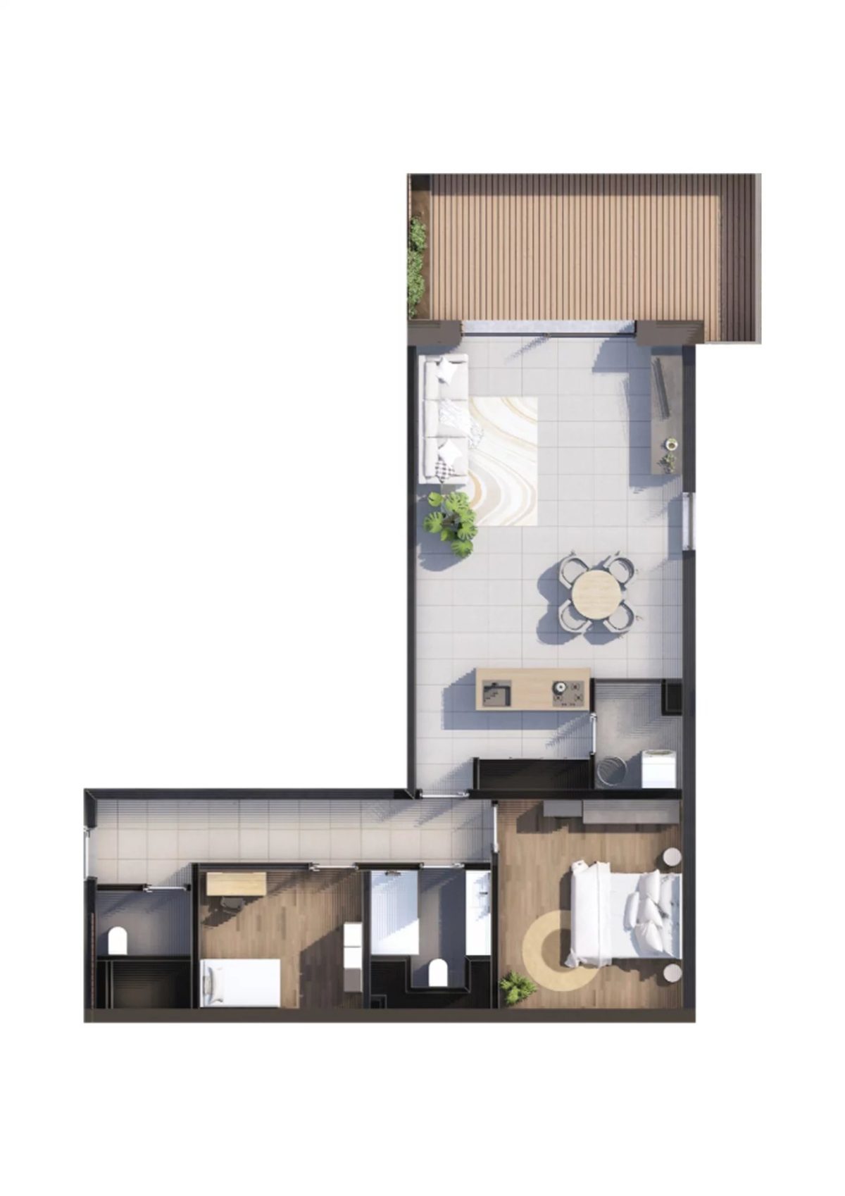 Flur 9,80 m² – Wohnzimmer 34,70 m² – Küche 4,20 m² – HWR 3,50 m² – Schlafzimmer 8,40 m²- Schlafzimmer 02:14,10 m² – Badezimmer 4,40 m²- WC 2,30 m²