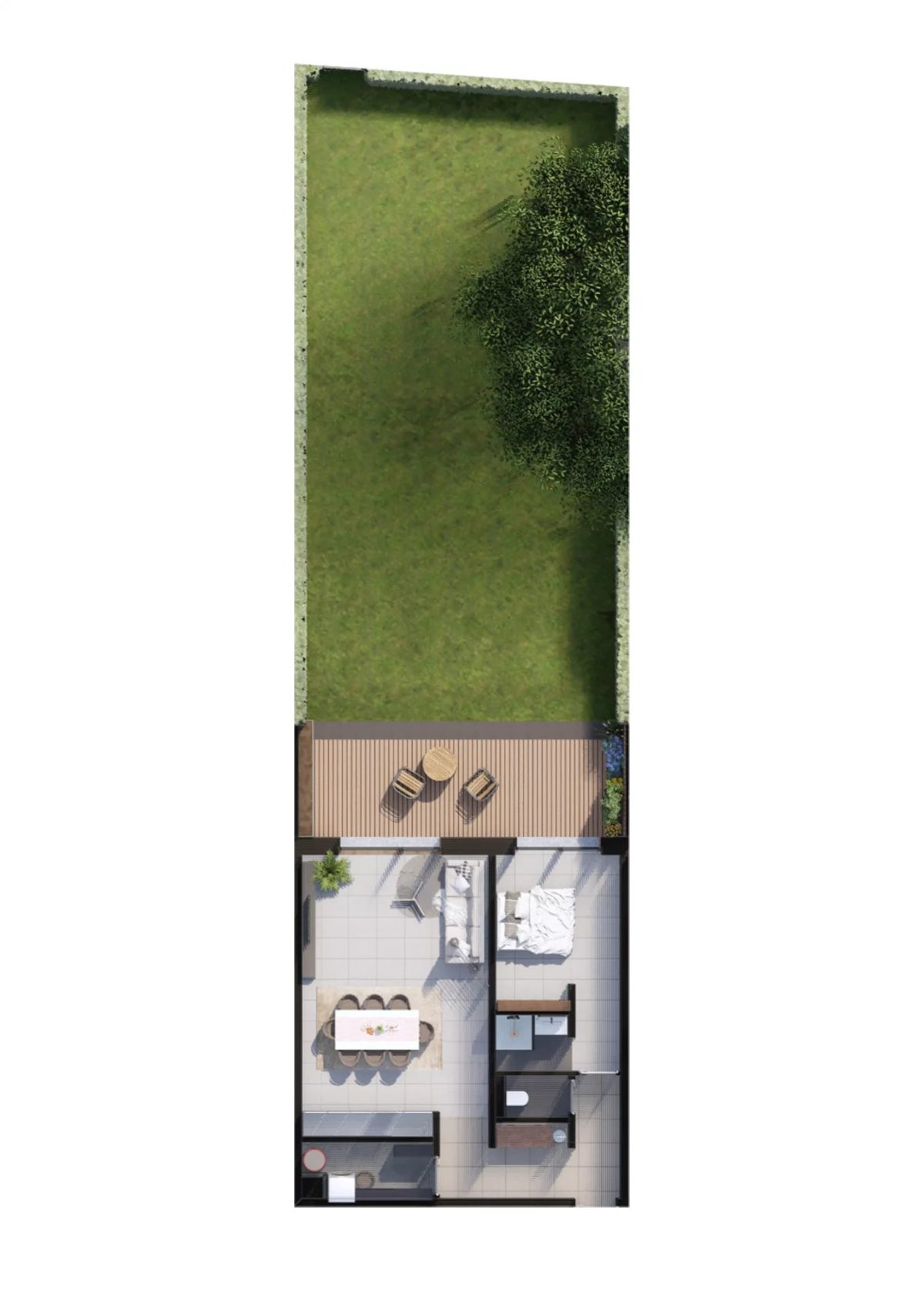 Diese Wohnung befindet sich im EG des Gebäudes und verfügt über einen Garten 101,10 m², eine Terrasse 16,40 m², einen PKW Stellplatz innen & außen.