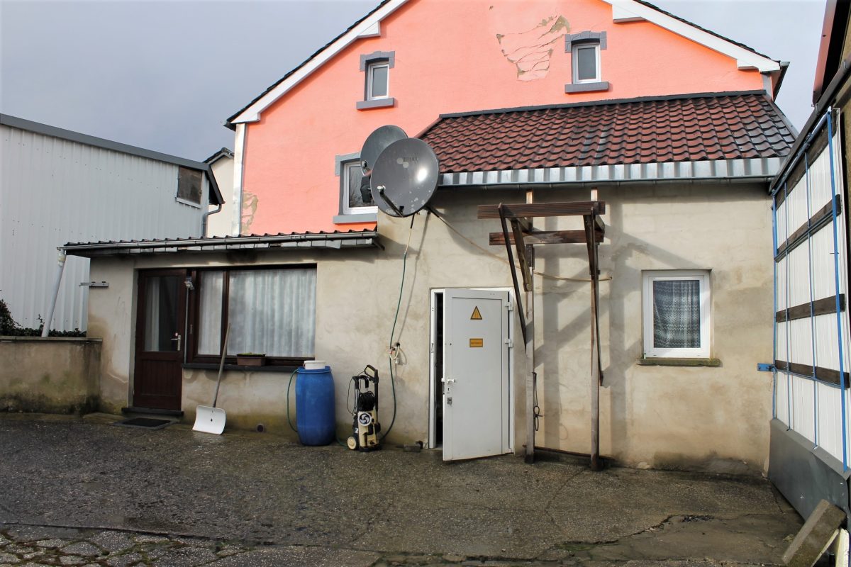Ehemaliger Bauernhof in ruhiger Lage und nur 10 Minuten der luxemburgischen Grenze entfernt, sucht neue Eigentümer. Auf dem 860 m² großen Grundstück befinden sich neben dem Wohnhaus eine Halle (ca. 120 m²), ein kleiner Schuppen sowie eine ehemalige kleine Stallung, die als Abstellfläche genutzt werden können. Der Speicher der Immobilie stellt ebenfalls weiteren Stauraum zur Verfügung. Die Garage bietet Platz für 2 PKWs. Auf dem Grundstück befindet sich ein Brunnen. Die Bedachung ist teilweise mit Dachpfannen und teilweise mit Welleternit gedeckt. Das Haus wird mit Elektroheizungen beheizt. Das Katastereinkommen beträgt 502 €. Bei der notariellen Urkunde wird ein konformer Strombericht vorliegen.