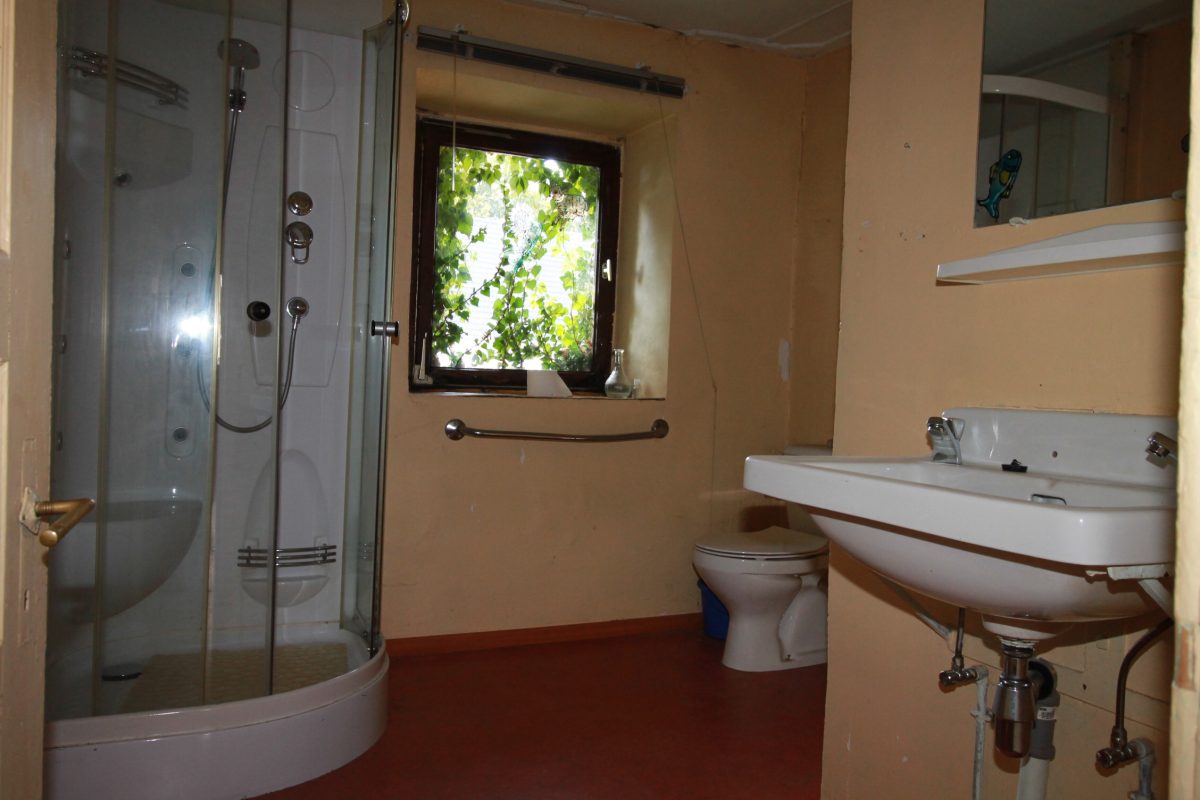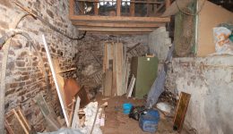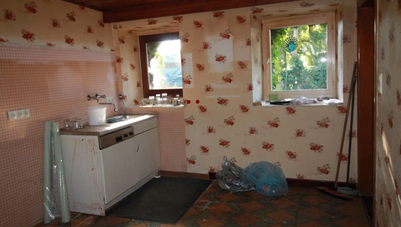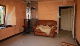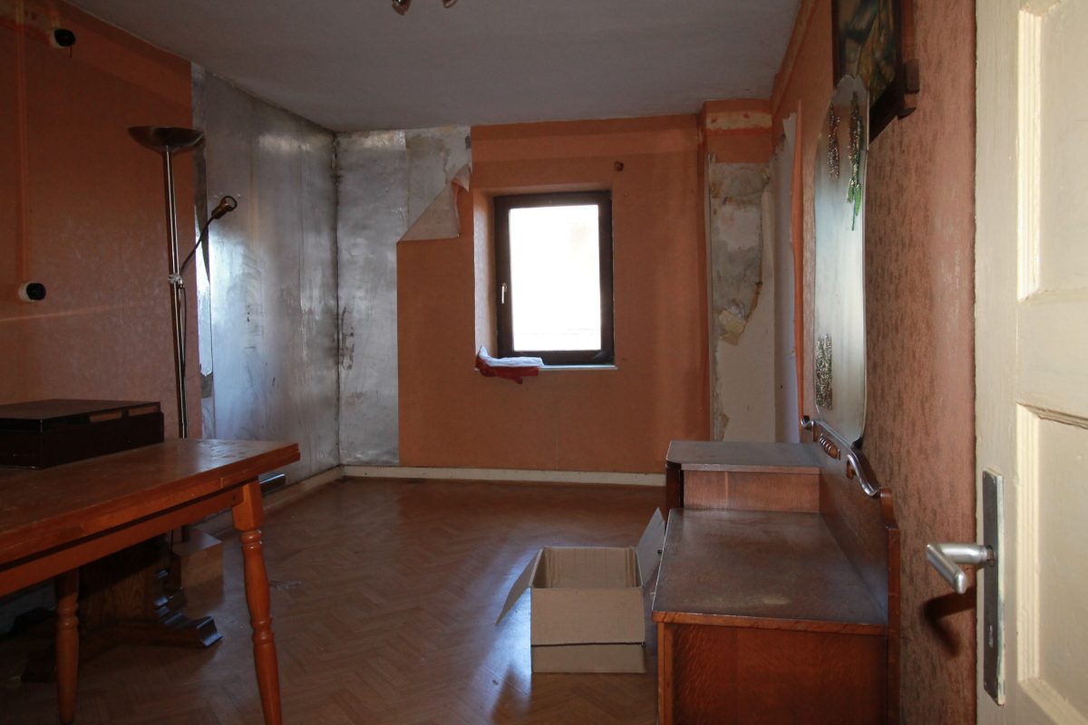 Ehemaliger Dreifassaden-Bauernhof mit Wohnhaus und Nebengebäuden, komplett renovierungsbedürftig und befindet sich in einem stark sanierungsbedürftigen Zustand und bietet eine solide Grundlage für umfassende Renovierungen oder einen vollständigen Umbau, mit einer Wohnfläche von. 98 m² und 230 m² Nutzfläche, inklusive Nebengebäude, Scheune, Stallungen. Das Grundstück erstreckt sich hinter dem Haus in eine ruhige Grünfläche.
