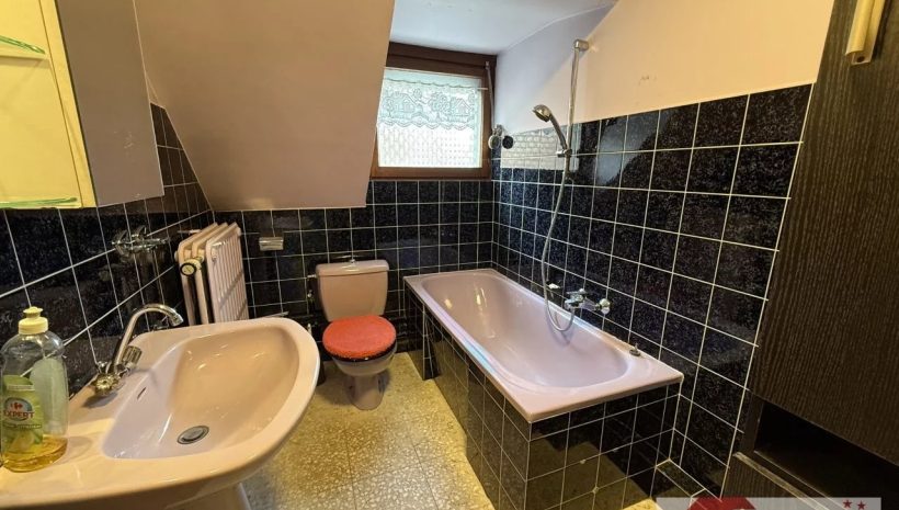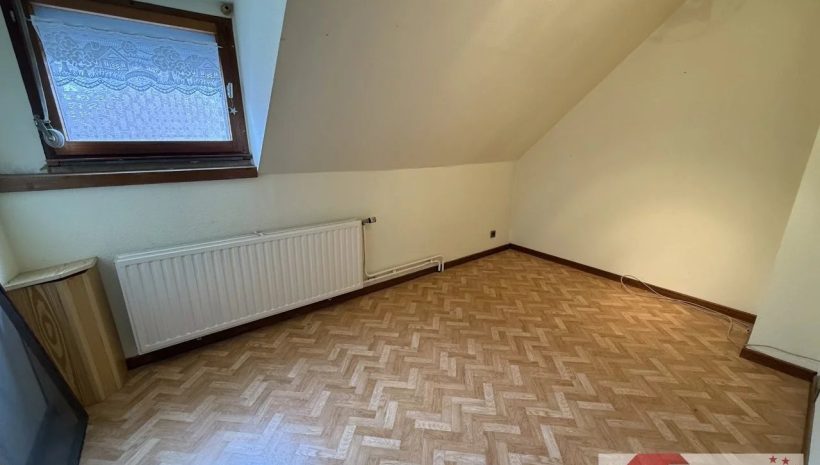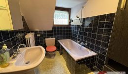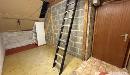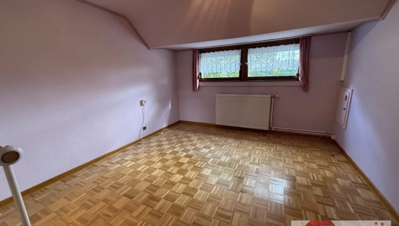 Im Obergeschoss erwarten Sie zwei weitere Schlafzimmer (ca. 16 m² mit Parkett und ca. 10 m² mit Vinylboden), ein Büro oder Ankleideraum von ca. 6 m² sowie ein Badezimmer mit Wanne, Waschbecken und WC. Das Bad ist funktionstüchtig, entspricht jedoch nicht mehr dem heutigen Standard.