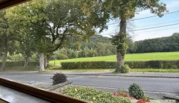 Das Herzstück des Hauses ist das ca. 24 m² große Wohn- und Esszimmer mit Blick auf die gegenüberliegenden Felder. Angrenzend liegt die rund 16 m² große Küche, ausgestattet mit einer älteren, aber funktionsfähigen Einbauküche sowie einem Kaminofen. Hier bietet sich die Möglichkeit, eine moderne Traumküche zu integrieren. Wer offene Grundrisse bevorzugt, könnte durch das Entfernen der Trennwand einen großzügigen Wohn- und Essbereich mit offener Küche schaffen. Von hier aus gelangt man direkt auf die Terrasse mit Zugang zum Seitenweg. Auf dieser Etage befinden sich zudem ein Gäste-WC, ein Schlafzimmer von ca. 16 m² sowie ein kleiner Abstellraum.