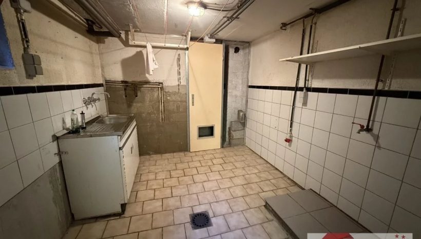 Der Keller bietet mit zwei Räumen (ca. 16 m² und 12 m²) praktische Abstell- und Lagermöglichkeiten. Eine Garage mit elektrischem Tor ist ebenfalls integriert.