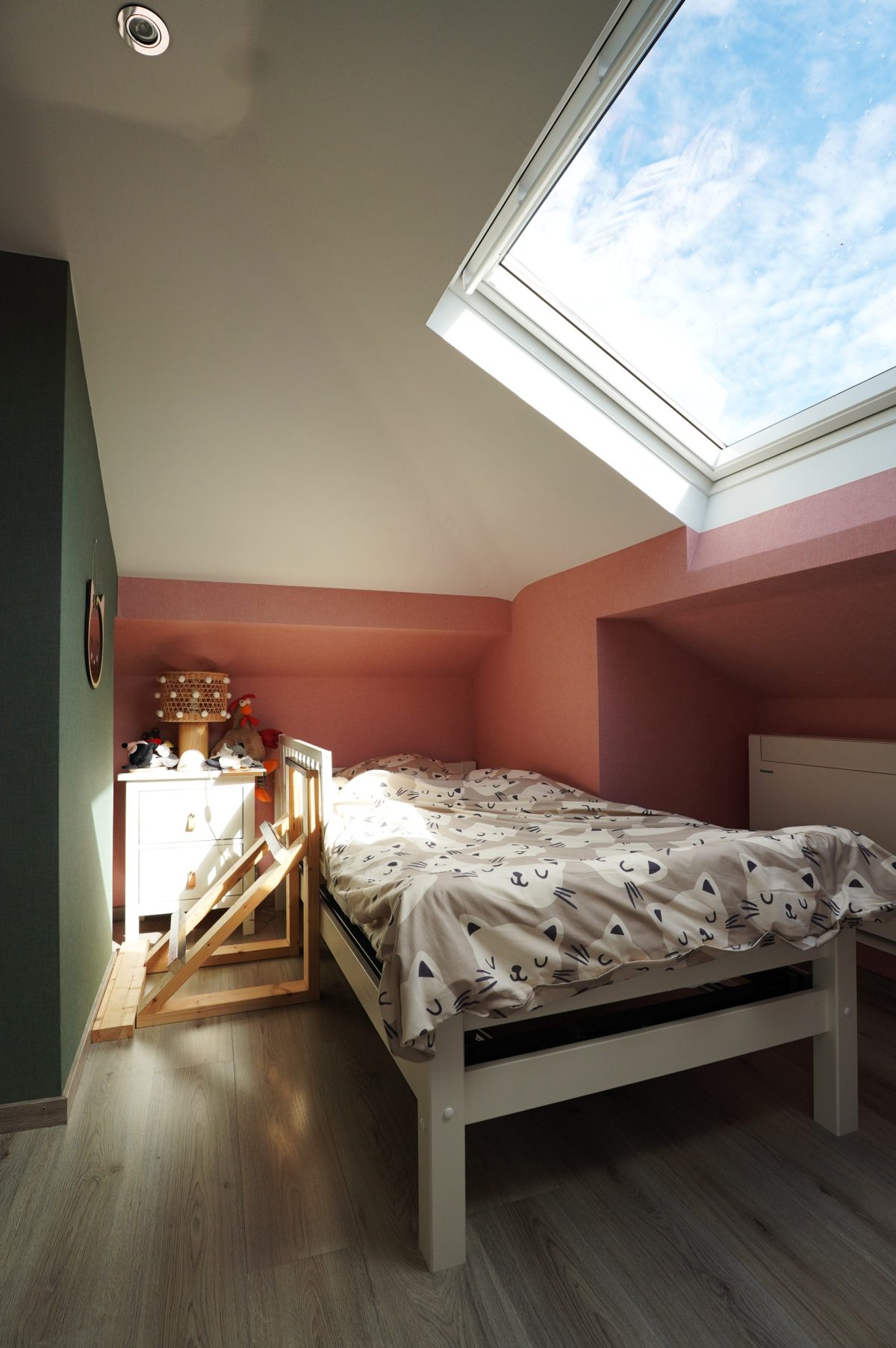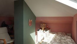 Das Obergeschoss umfasst ein schönes Schlafzimmer unter dem Dach mit Zugang zu einem kleinen Dachboden.