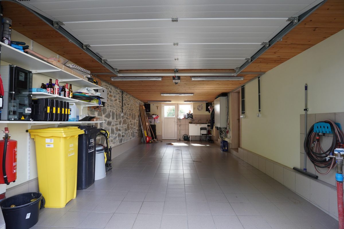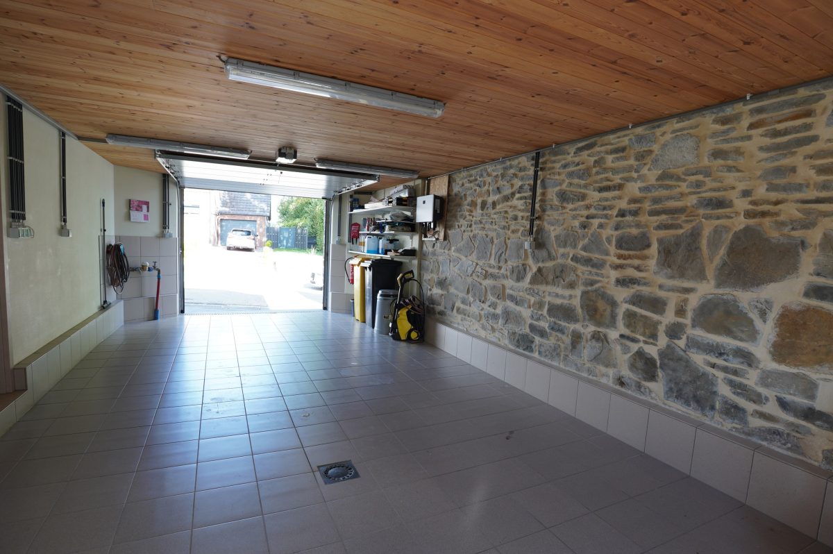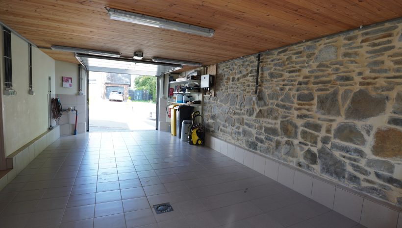 Das Untergeschoss besteht aus einem Vorratskeller, einer Waschküche mit Anschlüssen für eine Waschmaschine in erhöhter Position, einer Ölheizung, einer thermodynamischen Wärmepumpe, einer großen Garage mit elektrischem Toröffner und einem Atelier mit Regalen.
