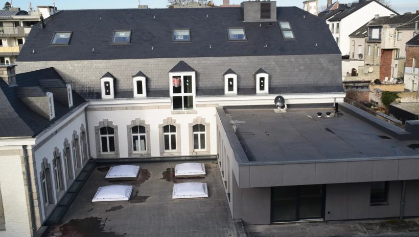 Am Marktplatz 8, direkt neben den Räumlichkeiten der renommierten ostbelgischen Tageszeitung „Grenz-Echo“, befindet sich Ihr neues Zuhause. Der Aufzug bringt Sie bequem bis in die dritte Etage, von wo aus Sie mit wenigen zusätzlichen Treppenstufen Ihre charmante Dachgeschosswohnung erreichen. Auf einer Wohnfläche von etwa 96 m² erwartet Sie ein modernes, stilvolles Wohnambiente mit einem durchdachten Grundriss. Der Eingangsbereich bietet ausreichend Platz für eine Garderobenecke und führt Sie in alle weiteren Räume.
