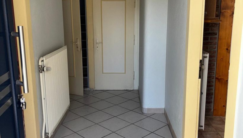 Diese Immobilie mit 2 Fassaden bietet im Erdgeschoss eine Diele, eine Einbauküche mit angrenzendem Wohnzimmer und einem gemütlichen Holzofen, ein Esszimmer sowie einen Abstellraum mit WC.