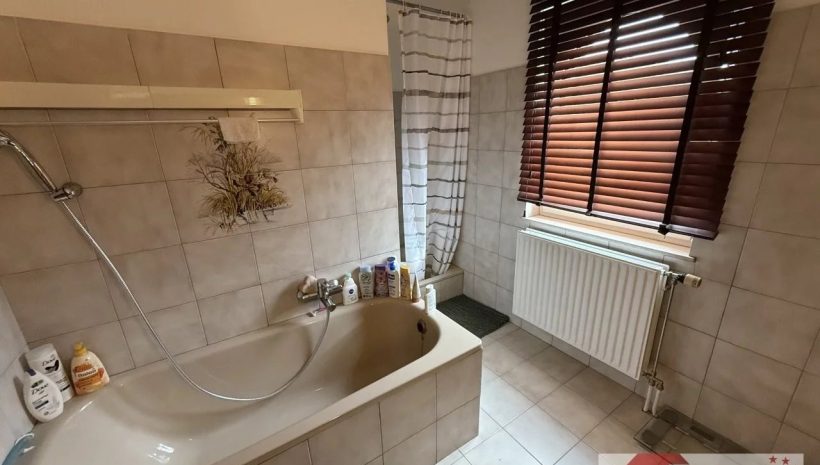 Über die Treppe gelangen Sie in das Obergeschoss, wo drei großzügige Schlafzimmer (ca. 22 m², 14 m², 14 m²) mit warmem Laminatboden auf Sie warten. Jeder Raum strahlt Ruhe und Geborgenheit aus – perfekt als Elternschlafzimmer, Kinderzimmer oder Bürob. Zentral auf der Etage liegt das Badezimmer: zwar in die Jahre gekommen, aber sauber, gepflegt und voll nutzbar. Mit großer Dusche, Badewanne zum Entspannen, WC und Waschtisch bietet es alles, was man für den Alltag braucht.