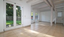 Das Haus liegt etwa 20 Meter von der Straße zurückversetzt und verfügt über einen Garten sowohl vorne, als auch hinten.