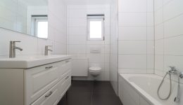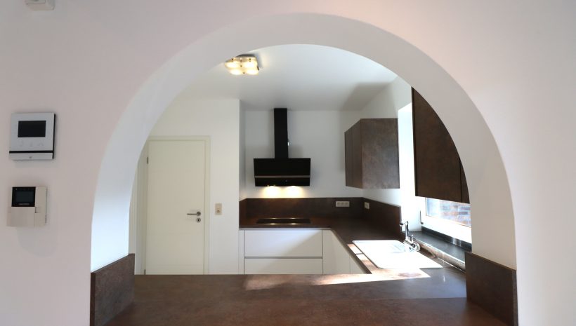 –	Erdgeschoss: Eingangsbereich, offenes Wohnzimmer mit voll ausgestatteter Küche, Schlafzimmer, Badezimmer, Technikraum und separates WC.