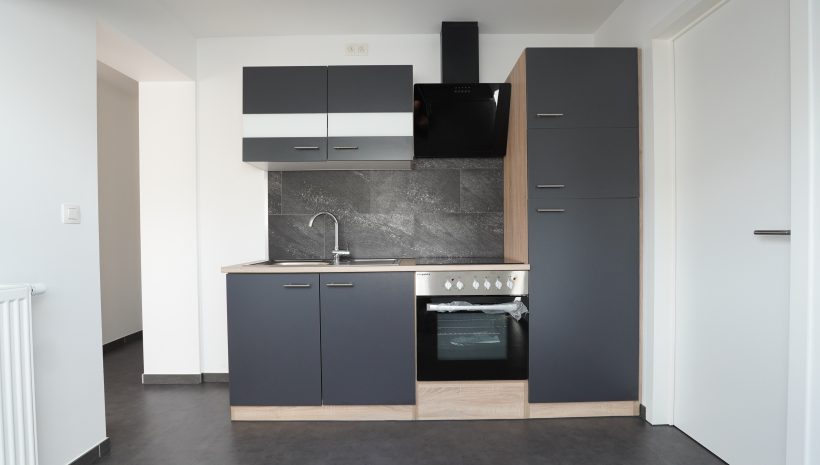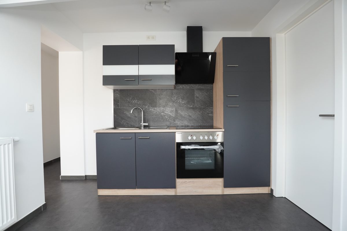 Eingangsbereich, großes helles Wohnzimmer, neue Einbauküche (Cerankochfeld, Backofen, Dunstabzugshaube, Kühlschrank), Badezimmer mit Dusche, Waschbecken, WC und Anschluss für eine Waschmaschine, 1 Schlafzimmer.