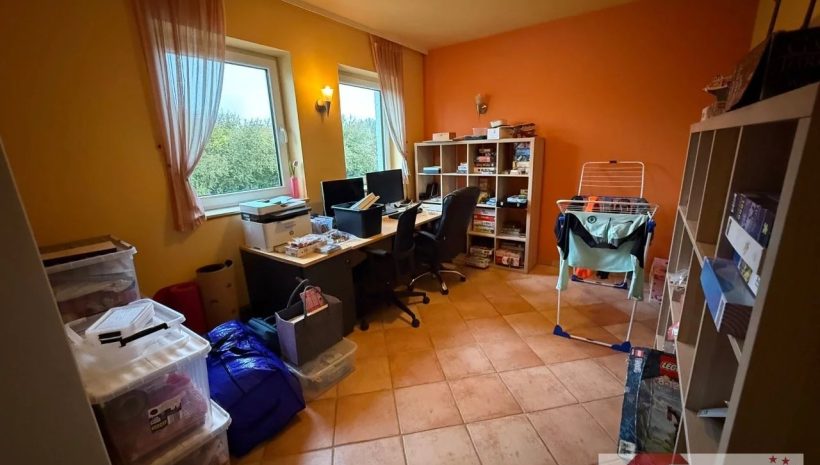 Auch technisch weiß die Villa zu überzeugen: Sie wird über eine Ölheizung mit Tank beheizt, im Erdgeschoss sorgt eine Fußbodenheizung für angenehme Wärme, während im Obergeschoss Heizkörper installiert sind. Die PVC-Fenster verfügen über eine Doppelverglasung. Eine Photovoltaikanlage mit einer Leistung von 8.000 kW produziert umweltfreundlichen Strom, und eine Wasserzisterne versorgt die Toiletten, die Gartenbewässerung sowie die Waschmaschine.