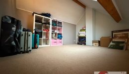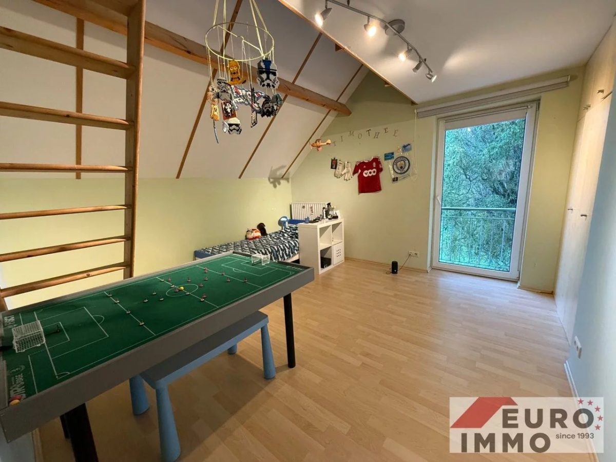 Über wenige Stufen erreichen Sie schließlich einen weiteren, ca. 16 m² großen Raum, der sich vielfältig nutzen lässt – ob als Gästezimmer, Spielzimmer, Büro oder Stauraum. Ein wahres Raumwunder mit vielen Möglichkeiten.
