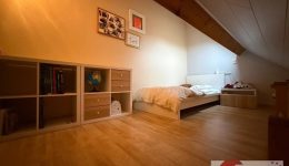 Rechts und links dieses zentralen Bereichs befinden sich drei Schlafzimmer (je ca. 16–17 m²), die jeweils über eine charmante Mezzanine verfügen. Diese halbhohen Ebenen sind das Highlight für Kinder: unten Spielen, Lesen oder Arbeiten – oben Schlafen oder Träumen. Solche Räume regen Fantasie und Geborgenheit gleichermaßen an.