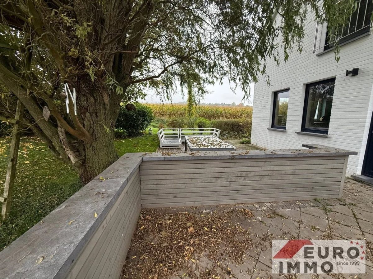 Der Garten ist mit einem Rasenmähroboter ausgestattet, der die Pflege erleichtert.