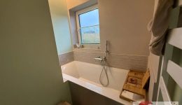 Ein weiteres Schlafzimmer (ca. 11,5 m²) ist über einen separaten Flur mit praktischen Einbauschränken zugänglich. Von hier aus erreicht man auch das moderne Badezimmer (ca. 12 m²) – ein Raum, der Wellnessgefühl vermittelt. Eine clevere Trennwand mit Schiebetür teilt den Raum in zwei Zonen: auf der einen Seite die Waschtische, auf der anderen Seite die Bade- und Duschzone. Die italienische Dusche und die Badewanne mit Fensterblick schaffen ein Ambiente zum Entspannen und Genießen – ein Ort, an dem Duschen und Baden zum Erlebnis werden.