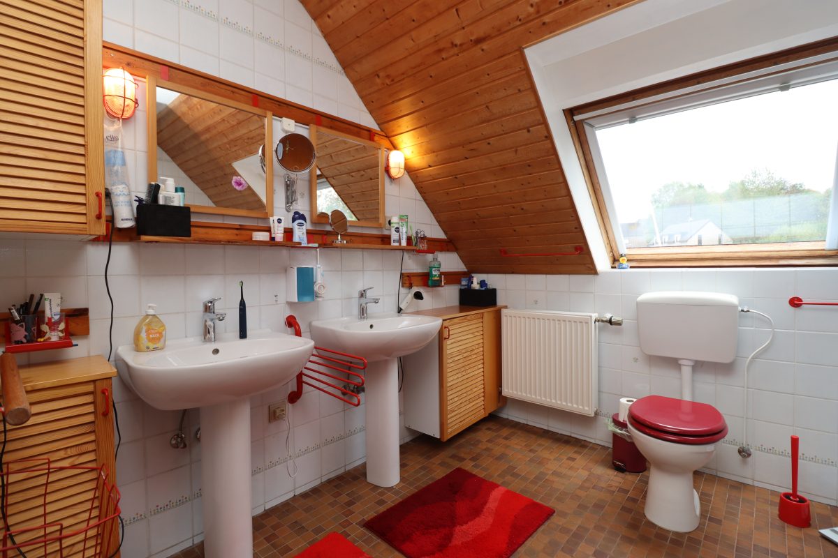 Das Obergeschoss beherbergt vier weitere Schlafzimmer sowie ein weiteres Badezimmer mit Dusche und Badewanne. Der großzügige Speicher kann vielfältig genutzt werden.