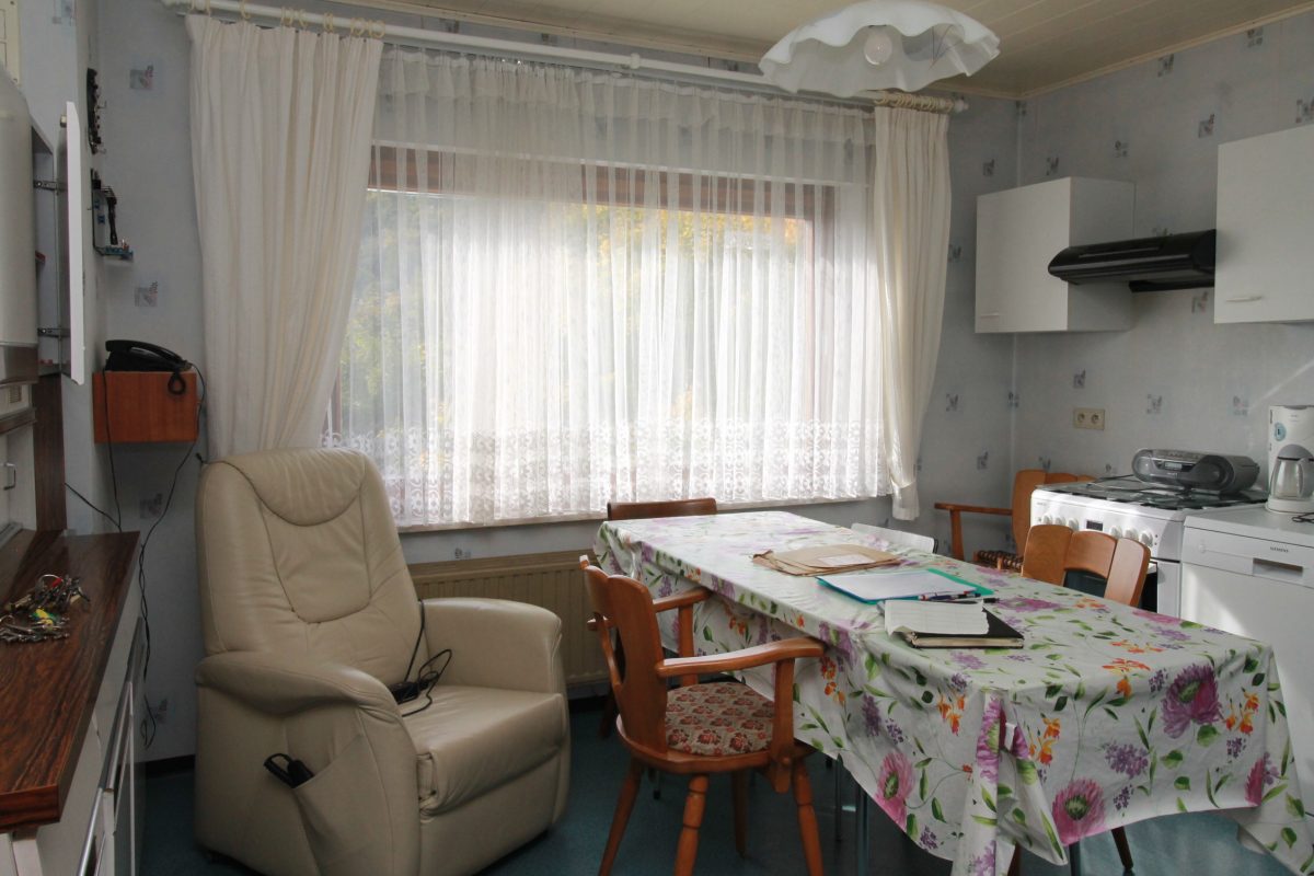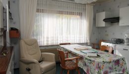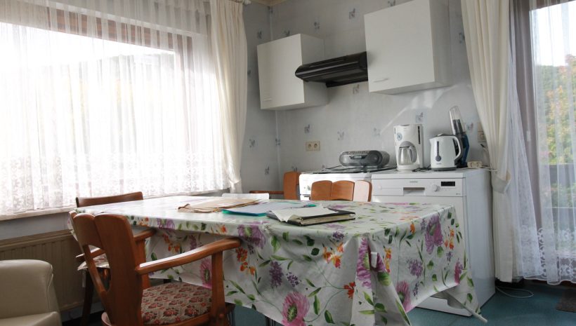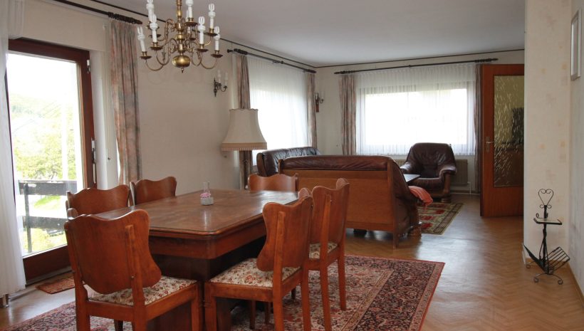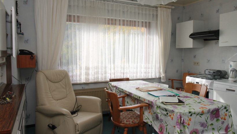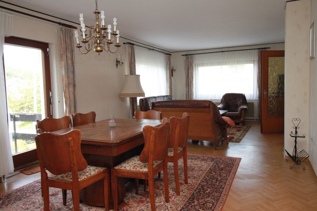 Das Haus ist in die Jahre gekommen und bietet daher viel Potenzial zur individuellen Renovierung und Modernisierung. Besonders angenehm ist das helle Wohn- und Esszimmer mit Zugang zur Terrasse – ideal, um den Blick ins Grüne zu genießen. Auch die vorhandene Einbauküche verfügt über einen eigenen Terrassenzugang, was kurze Wege ins Freie ermöglicht.