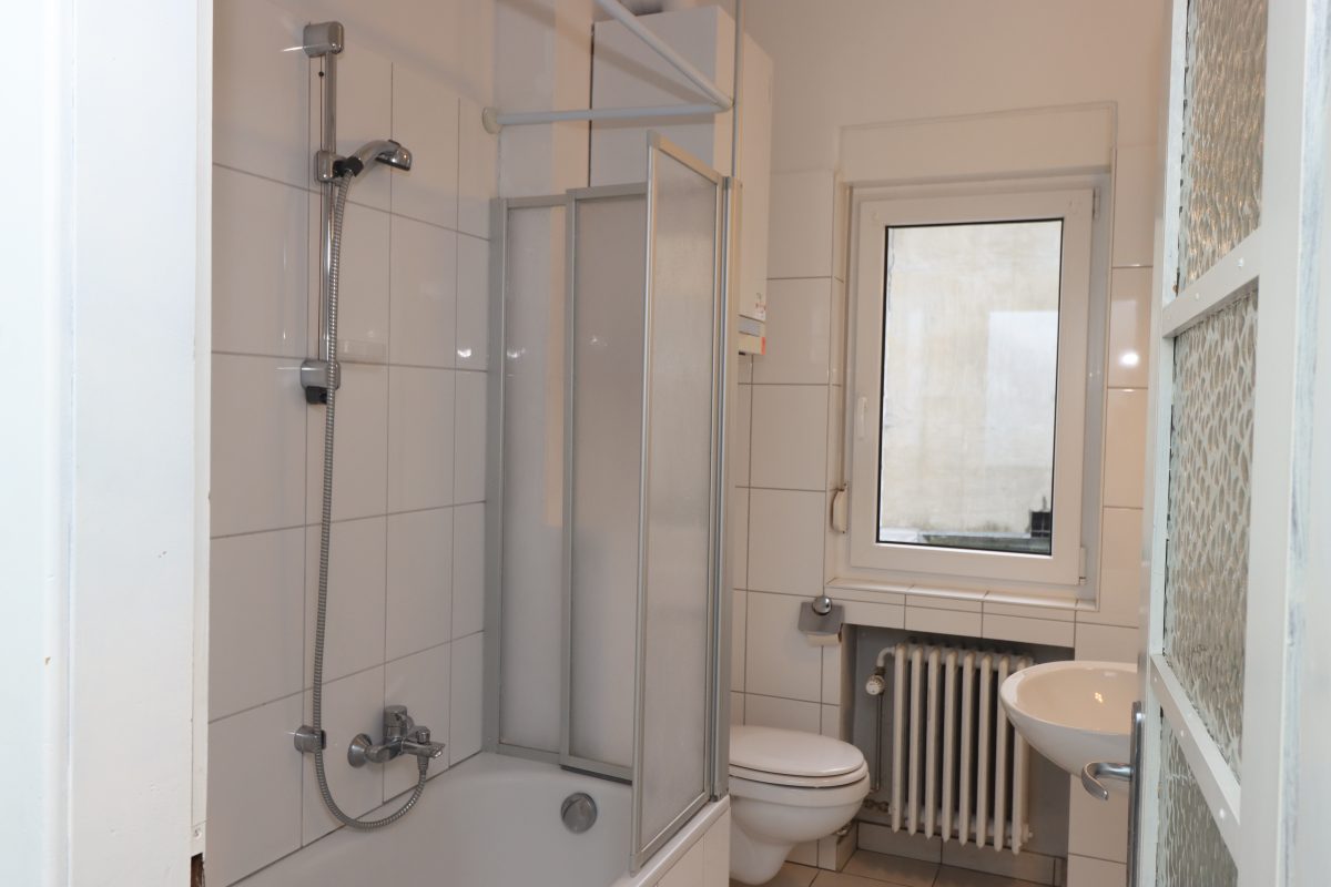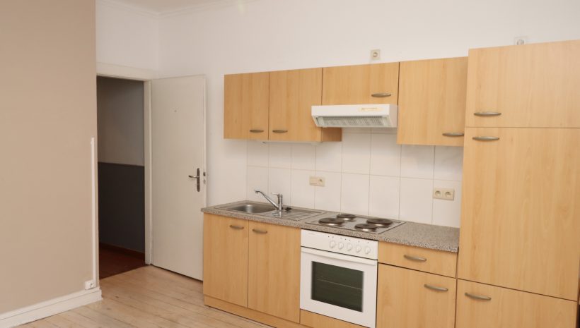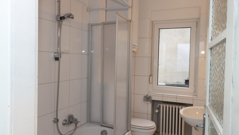 Die Wohnung teilt sich wie folgt auf: Zugang zur Wohnung über eine nostalgische Holztreppe zur 1.Etage. Kleiner Eingangsbereich, Bad, Küche, Schlafzimmer, Wohn- Esszimmer mit doppelter Türe als Raumtrenner. Hierdurch ergibt sich die Möglichkeit eine Hälfte dieses Raums als 2.Schlafzimmers zu nutzen oder als Büro- Arbeitsraum. Das Bad ist ausgestattet mit Duschwanne, Waschbecken und WC. Da jeder Raum Fenster hat und somit viel natürlichen Lichteinfall, wirkt diese Wohnung gemütlich und hell.