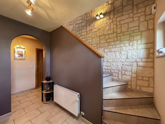CODIA präsentiert dieses wunderschöne Haus, das im Jahr 2000 erbaut wurde. Es liegt in der Nähe aller Annehmlichkeiten und bietet eine schnelle Anbindung an die Autobahn. Beim Betreten empfängt Sie eine großzügige Diele mit separatem WC. Das helle Wohnzimmer mit großen Fenstern öffnet sich über eine Schiebetür auf die sonnige Terrasse. Die voll ausgestattete Küche lädt zum Kochen und Genießen ein, während die angrenzende Garage mit Hauswirtschaftsraum einen direkten Zugang nach draußen bietet.