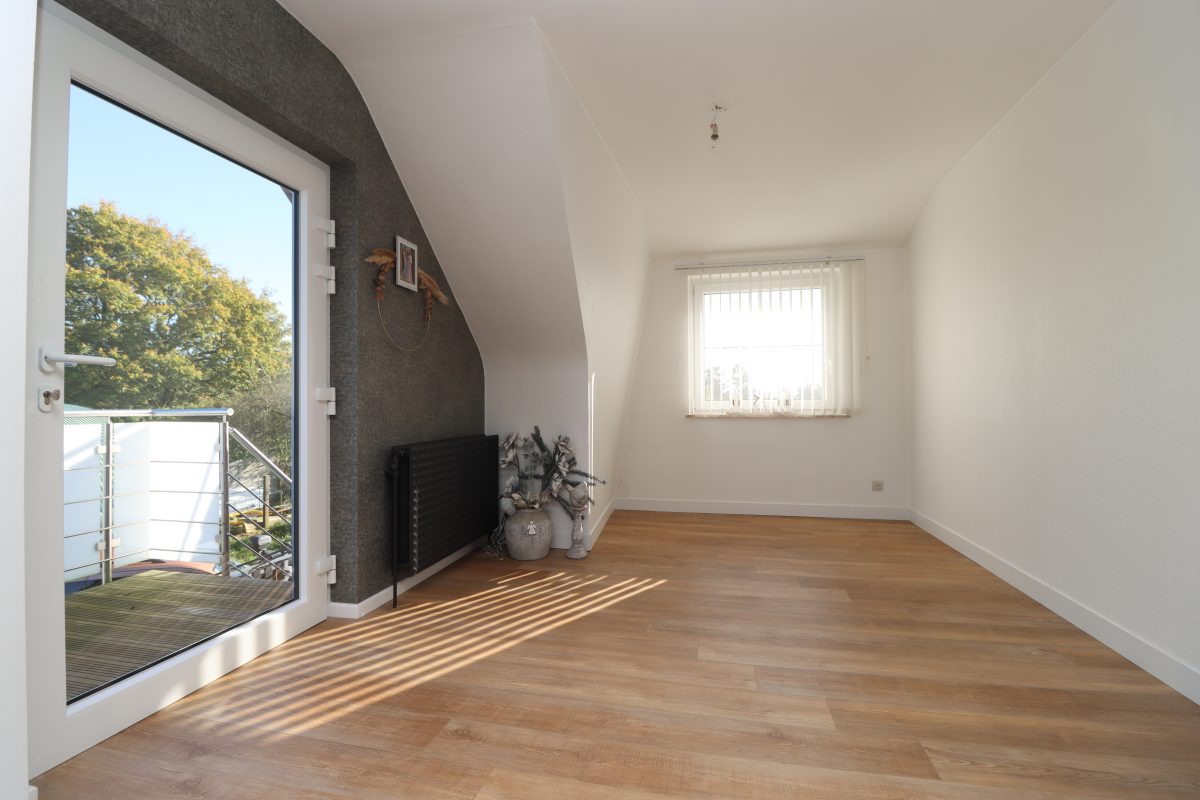 Das Appartement befindet sich auf der 1. Etage eines Zweiparteienhauses und überzeugt mit einem großzügigen, lichtdurchfluteten Wohn- und Essbereich, der durch einen Holzofen eine gemütliche Atmosphäre schafft. Vom Essbereich führt ein kleiner Balkon direkt in den eigenen Garten auf der linken Hausseite, der zum Verweilen im Freien einlädt. Die moderne Küche, die an den Essbereich angrenzt, ist vollständig ausgestattet und bietet eine wunderbare Aussicht.