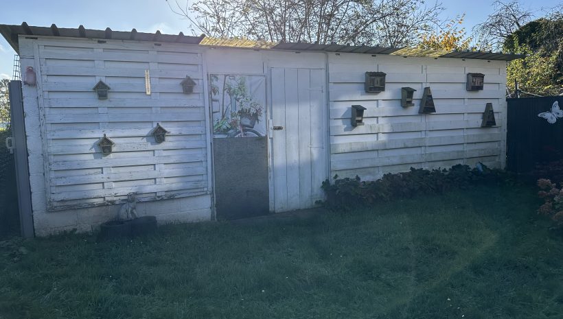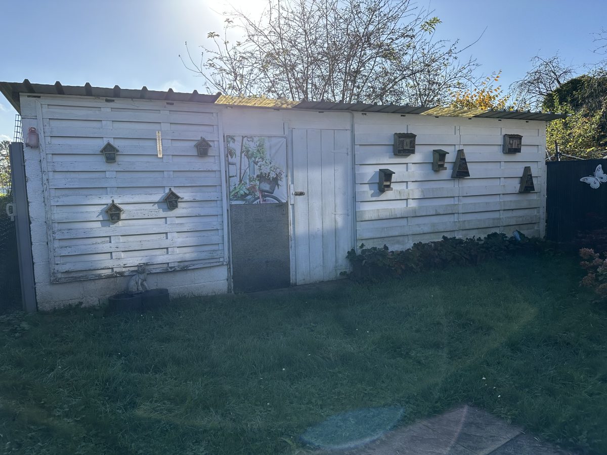 Zum Angebot gehört ebenfalls der gemeinschaftliche Waschraum, ein Kellerraum, ein Carport mit Platz für zwei Fahrzeuge und ein weiterer Stellplatz direkt vor dem Haus. Im Garten befinden sich außerdem zwei praktische Schuppen, die zusätzlichen Stauraum bieten.