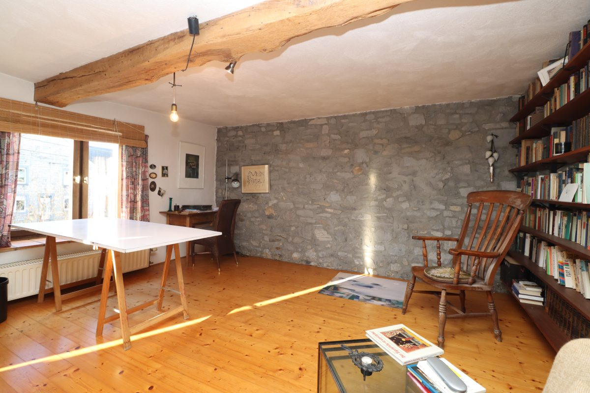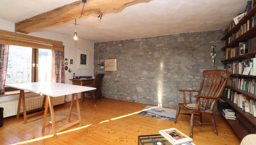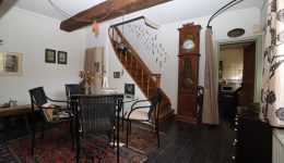 Eine historische Eichenholztreppe führt in das Obergeschoss des Hauses und somit direkt in eine großzügige Diele. Von hier aus gelangt man in zwei weitere Zimmer, eines davon mit angrenzendem Duschbad.