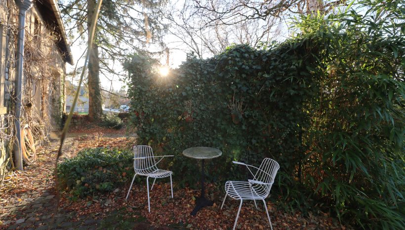 Der Garten an der Vorderseite des Hauses ist durch den alten Baumbestand blickgeschützt und bietet somit angenehme Privatsphäre.