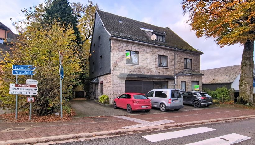 BÜLLINGEN Bahnhofstraße, 1: Im Zentrum des Dorfes Büllingen finden Sie dieses angenehme Haus, das modernisiert werden kann und zahlreiche Möglichkeiten bietet. Mit einem privaten Parkplatz und einer Garage auf einem Grundstück von ± 2.116 m² haben Sie hier genügend Platz für Ihr neues Projekt. Diese Immobilie hält eine echte Überraschung bereit: Mit Genehmigung könnten hier bis zu drei Wohneinheiten entstehen. Das Haus besticht durch seine Helligkeit, einen einladenden Eingangsbereich und eine Treppe mit altem Charme. Auf jeder Ebene reihen sich die zahlreichen großen Wohnräume entlang eines zentralen Flurs. Jedes Stockwerk verfügt über ein separates WC und ein Badezimmer. Die voll ausgebauten Keller mit direktem Zugang zum teilweise bewaldeten Garten runden das Ganze ab. Ein Objekt, das sowohl als Ferienhaus als auch als Hauptwohnsitz genutzt werden kann – für große Familien ebenso wie für ein Immobilienprojekt mit mehreren Einheiten. Zögern Sie nicht, einen Besichtigungstermin zu vereinbaren.