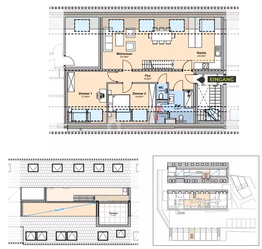 Das Appartement 8 verfügt über eine Wohnfläche von 101 m² und setzt sich wie folgt zusammen :