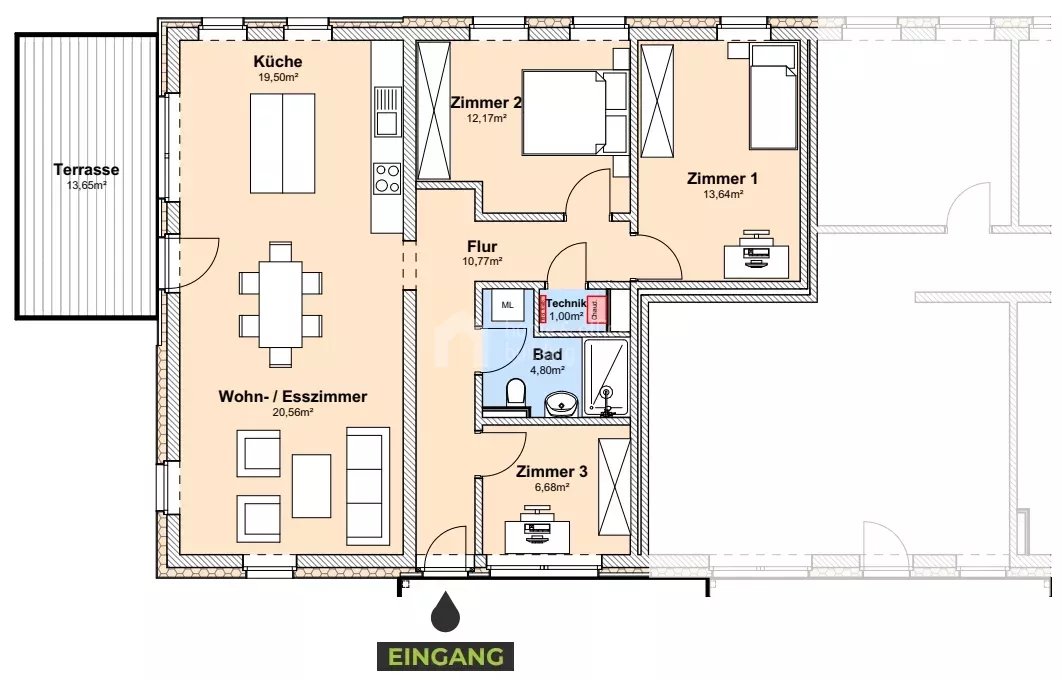 Hochwertige Ausstattung inklusive: Küche, Bad, Türen und Anstrich sind bereits enthalten!
