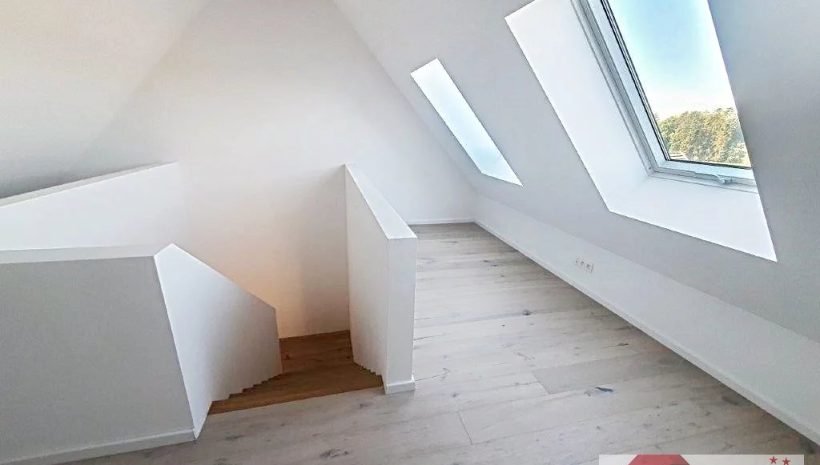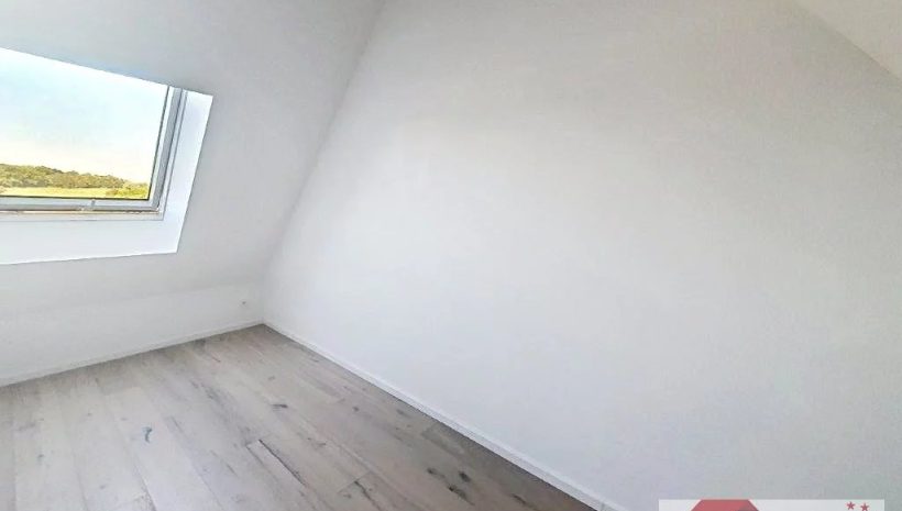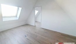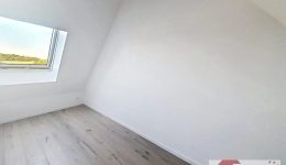 Über eine weitere Treppe erreichen Sie das Dachgeschoss, das den privaten Rückzugsbereich bildet. Hier befinden sich ein gemütliches zweites Schlafzimmer mit angrenzender Ankleide sowie eine offene Büro- bzw. Arbeitsecke im Flurbereich – ideal für Homeoffice oder kreative Tätigkeiten.