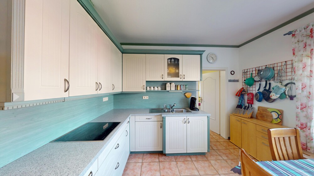 Mit einer Wohnfläche von ca. 169 m² und einer zusätzlichen Nutzfläche von ca. 35 m² bietet dieses Haus einen geräumigen Grundriss mit insgesamt sechs Zimmern, darunter drei gemütliche Schlafzimmer und zwei Bäder, die für Flexibilität und Komfort sorgen. Das Herz des Hauses ist zweifellos die einladende Terrasse, die zum Entspannen oder zu geselligen Zusammenkünften mit Familie und Freunden einlädt.