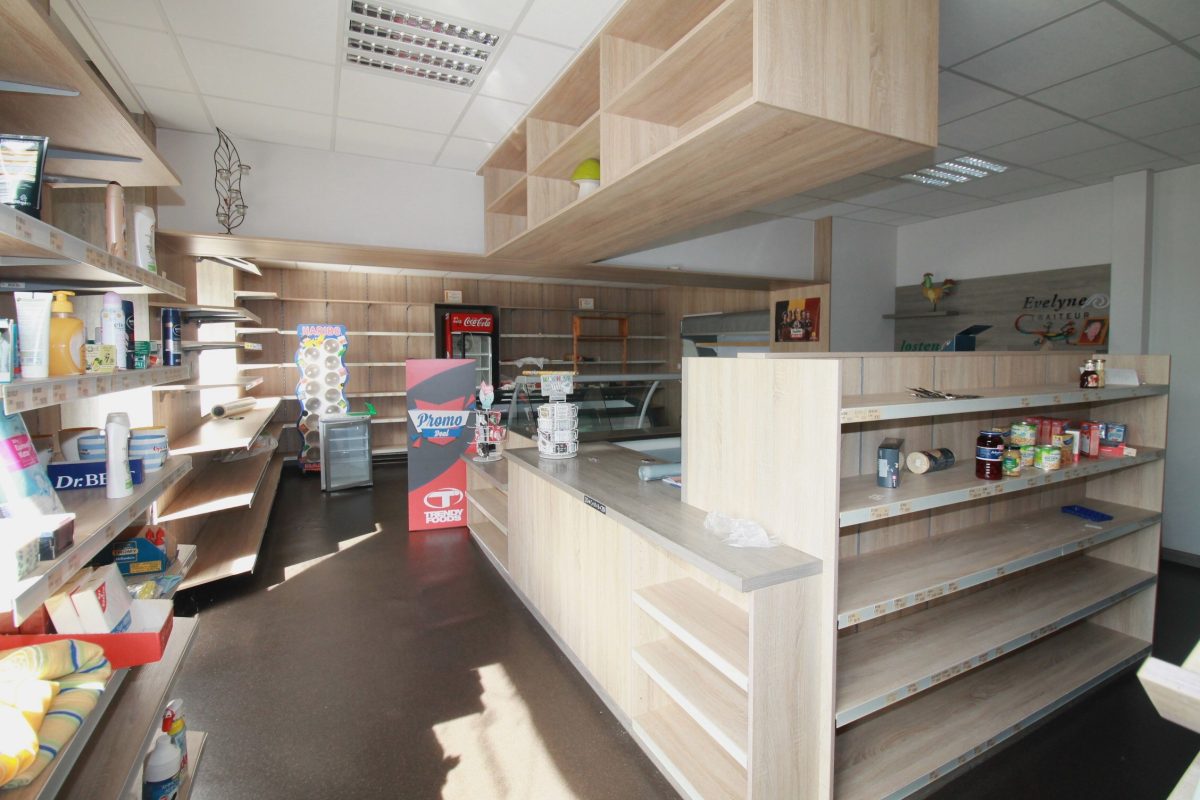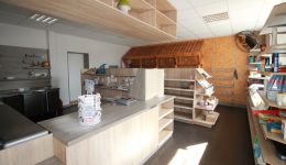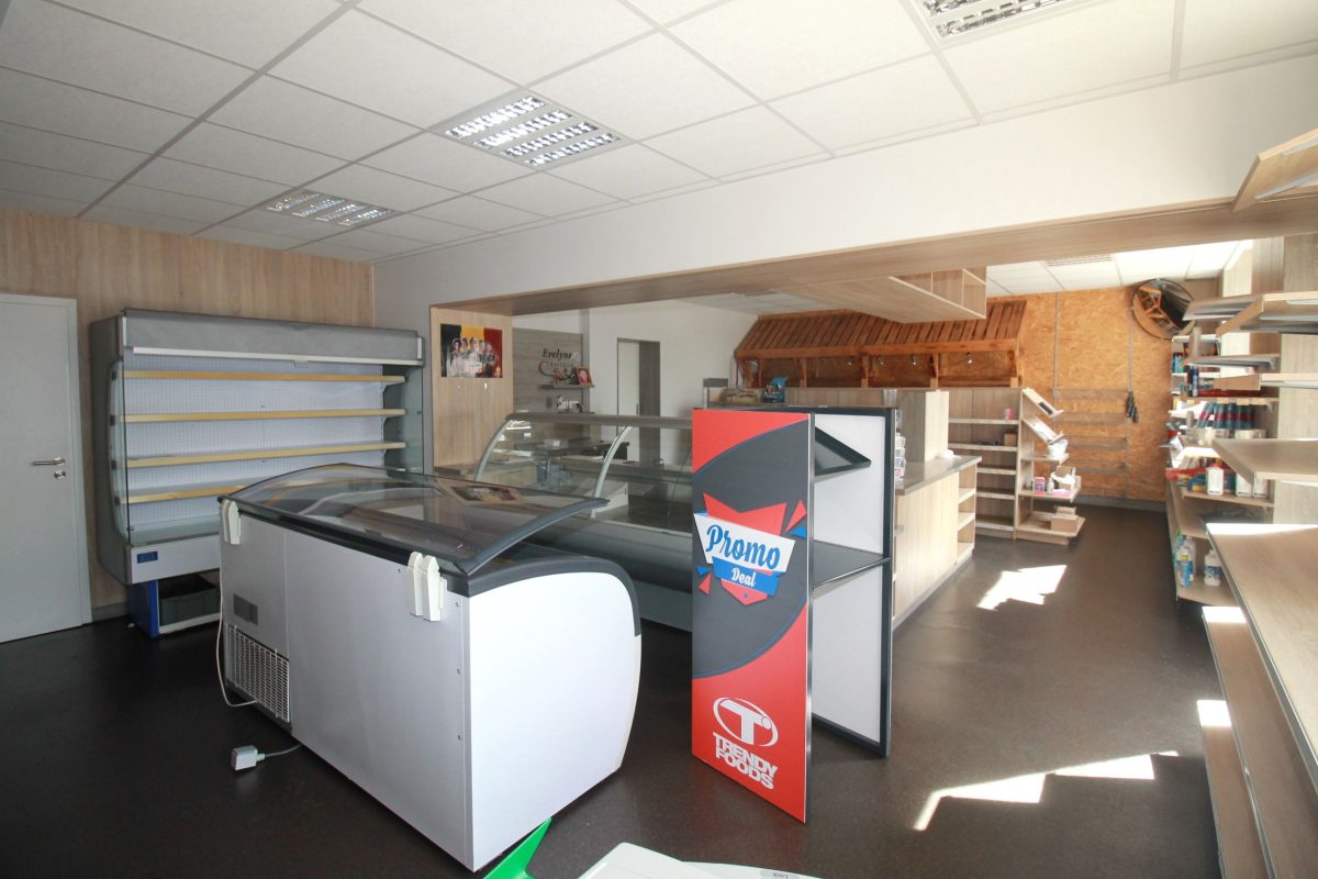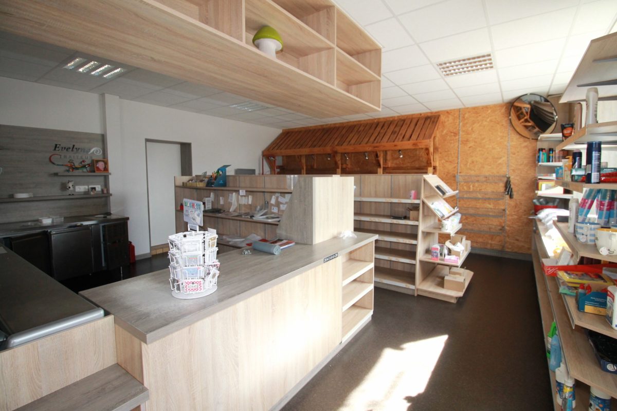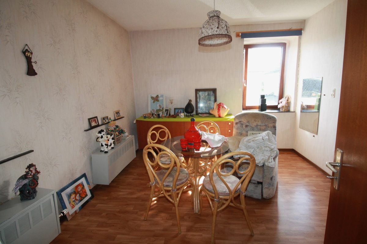 Im Erdgeschoss befindet sich ein ehemaliges Geschäft mit einer Fläche von ca. 63 m², ergänzt durch einen Büroraum, einen Abstellraum sowie eine Küche. Das Badezimmer auf dieser Ebene ist mit Badewanne, WC und Waschbecken ausgestattet.