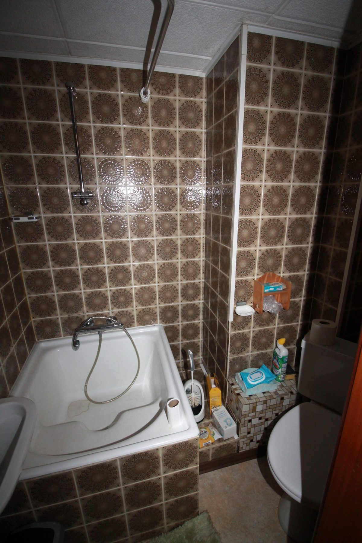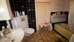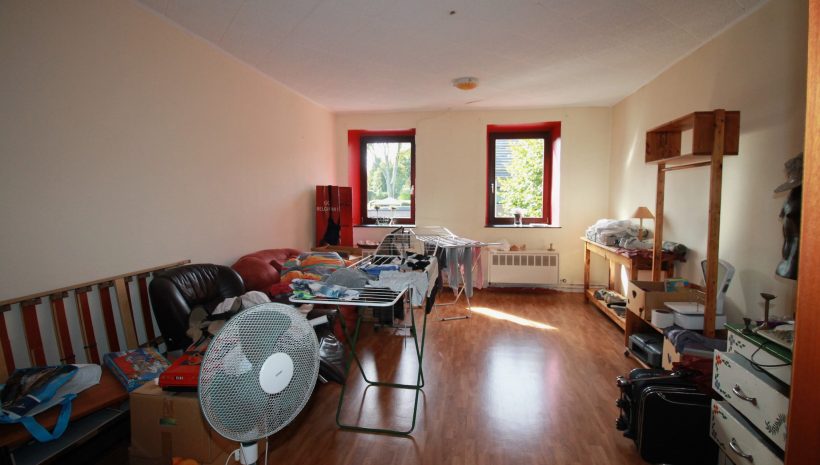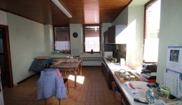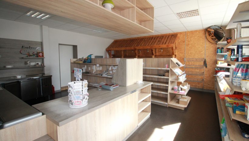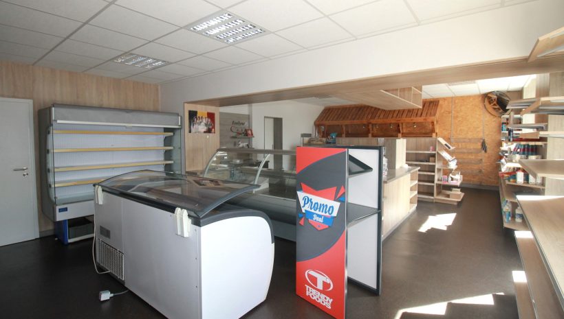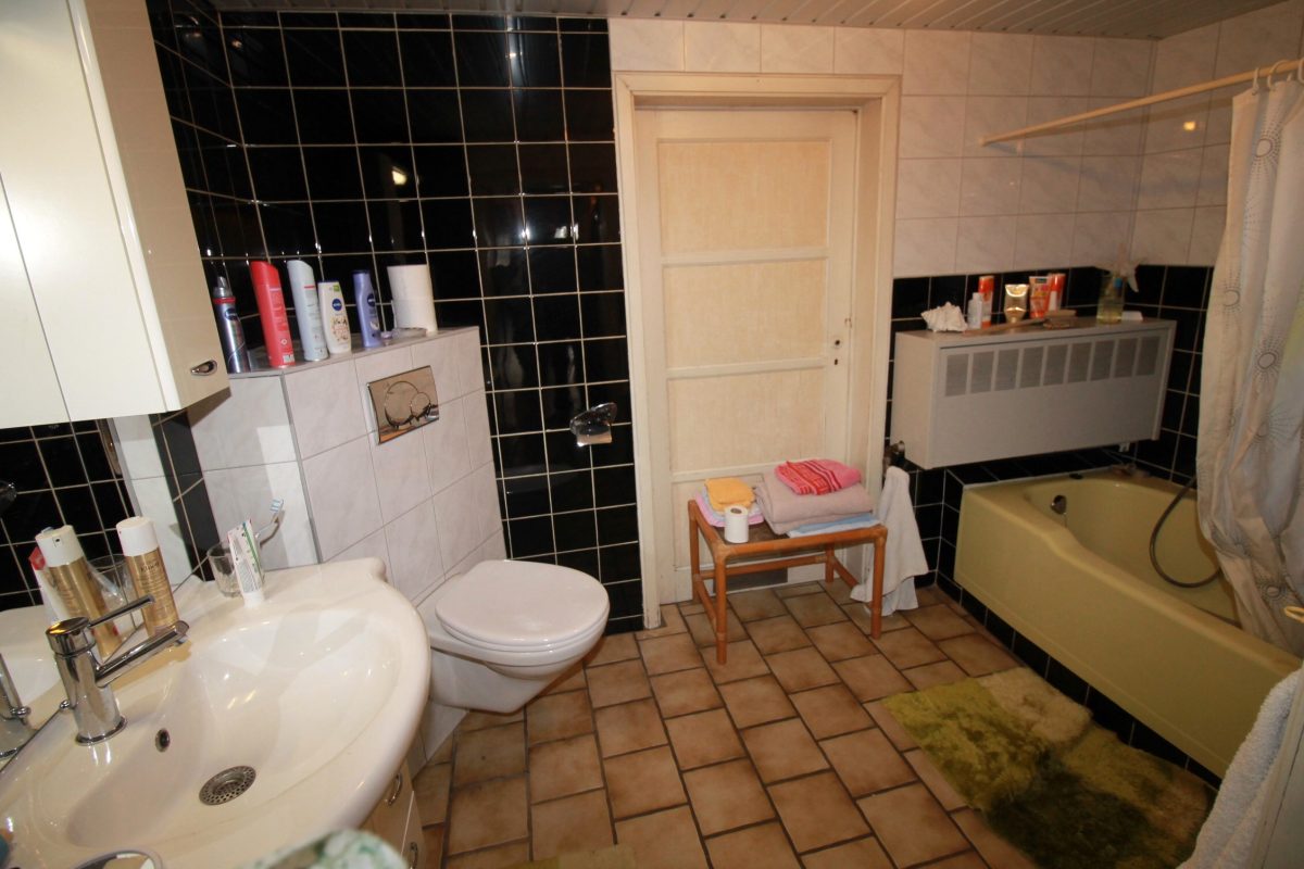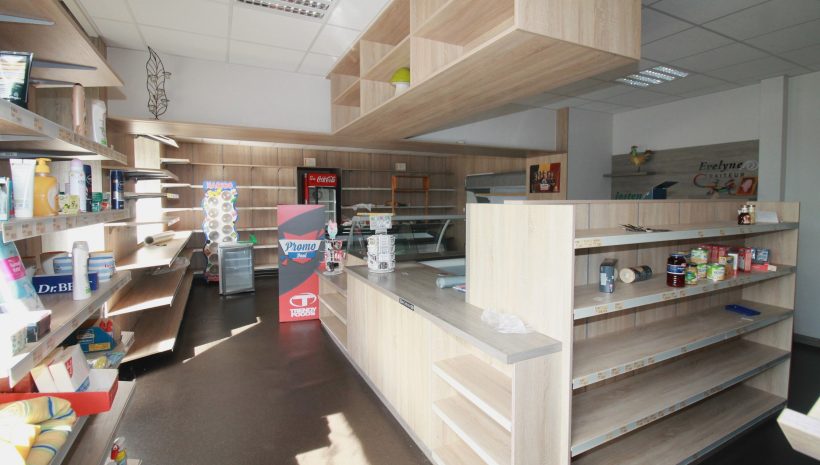 Im Erdgeschoss befindet sich ein ehemaliges Geschäft mit einer Fläche von ca. 63 m², ergänzt durch einen Büroraum, einen Abstellraum sowie eine Küche. Das Badezimmer auf dieser Ebene ist mit Badewanne, WC und Waschbecken ausgestattet.