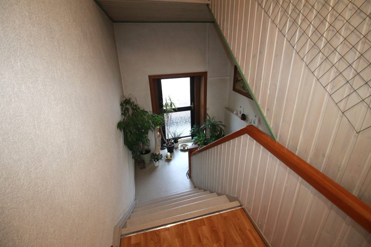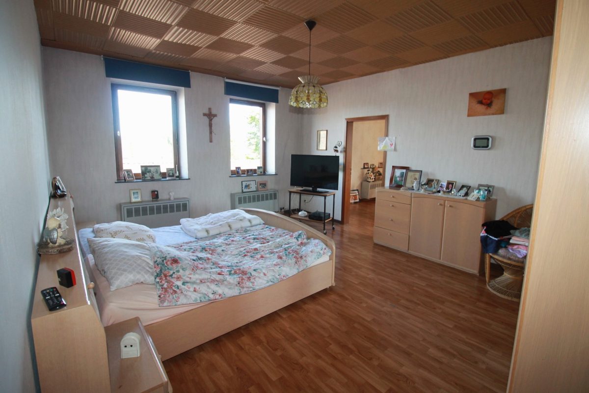 Die 1. Etage bietet ein großzügiges Wohn- und Esszimmer, eine Einbauküche mit Zugang zu einem kleinen Balkon, 4 Schlafzimmer und ein kleines Badezimmer mit Dusche, Waschbecken und WC. Die gesamte Wohnfläche beträgt ca. 200 m².