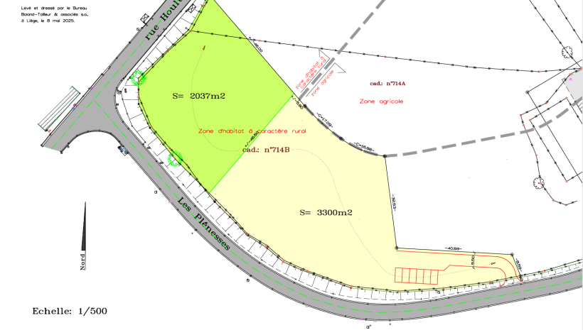 Baugrundstück in einem Wohnbegiet mit ländlichem Charakter mit der Katasternummer 714 B teilw. in Thimister – Clermont. Der Panoramablick ist herrlich, das Grundstück ist infrastrukturell sehr gut gelegen (Verbindung nach Thimister, Les Plénesses), Bushaltestelle nicht weit vom Grundstück.