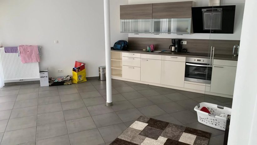 Die gesamte Wohnung ist mit pflegeleichten, anthrazitfarbenen Bodenfliesen versehen, die eine moderne und gleichzeitig praktische Wohnbasis schaffen. Zusätzlich steht Ihnen ein privater Kellerraum von etwa 4 m² als Stauraum zur Verfügung.