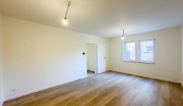 Diese im Jahr 2025 vollständig kernsanierte Erdgeschosswohnung bietet modernen Wohnkomfort in einem Zweifamilienhaus und wird erstmals nach der Sanierung vermietet. Die Wohnung verfügt über eine energieeffiziente Luft-Wasser-Wärmepumpe sowie eine Fußbodenheizung, die für ein angenehmes und gleichmäßiges Raumklima sorgt. Sie umfasst einen hellen Wohnbereich, zwei geräumige Schlafzimmer, ein modernes Badezimmer sowie eine separate Waschküche mit Anschlüssen für Waschmaschine und Trockner. Eine Einbauküche ist nicht vorhanden und kann vom Mieter nach eigenen Vorstellungen eingerichtet werden. Ein besonderes Highlight ist die große Terrasse von ca. 20 m², die zusätzlichen Wohnraum im Freien bietet. Zur Wohnung gehört außerdem ein privater Garageplatz auf der Rückseite des Gebäudes. Dieses Objekt eignet sich ideal für Mieter, die eine hochwertige, energieeffiziente und neuwertige Wohnlösung suchen. Miete 850€/Monat ohne Nebenkosten.