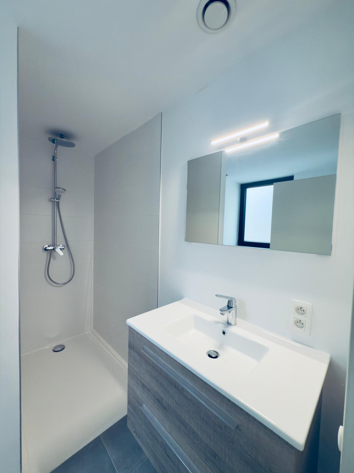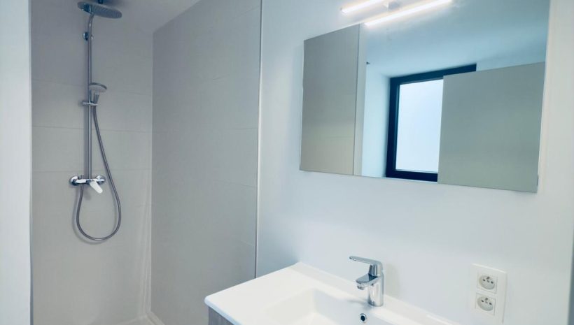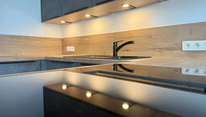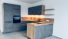 Auf ca. 60 m² Wohnfläche erwartet dich ein heller, offen gestalteter Wohn- und Essbereich mit integrierter, vollausgestatteter Küche. Das Badezimmer ist mit Dusche und WC ausgestattet.