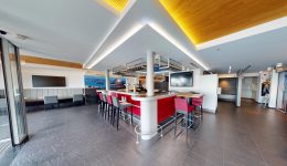 Das Restaurant überzeugt mit einer offenen, einladenden Atmosphäre. Ein gemütlicher Lounge-Bereich lädt zum Verweilen ein, während die zentrale Bar das Herzstück des Raumes bildet. Insgesamt bietet der Gastraum Platz für 72 Gäste.