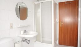 Erdgeschoss: Eingangsbereich mit Holztreppenhaus, das zu den oberen Etagen sowie zum Keller führt. Geräumiges und lichtdurchflutetes Wohn- und Esszimmer mit Zugang zur Terrasse und zum großen Garten, Küchenbereich, ein Schlafzimmer sowie ein Badezimmer mit Dusche, Waschbecken, WC und Anschlüssen für eine Waschmaschine (mit Möglichkeit, hier einen Hauswirtschaftsraum einzurichten).