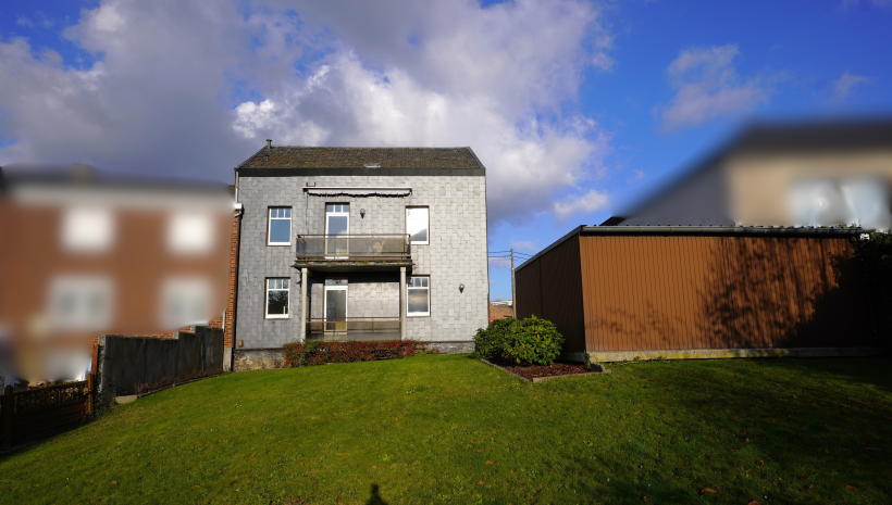 Großes und sehr gepflegtes Haus, derzeit aufgeteilt in zwei Wohnungen, mit großem Garten und zwei Garagen, gelegen in der Bachstraße 9 in 4720 Kelmis, auf einem 403 m² großen Grundstück.