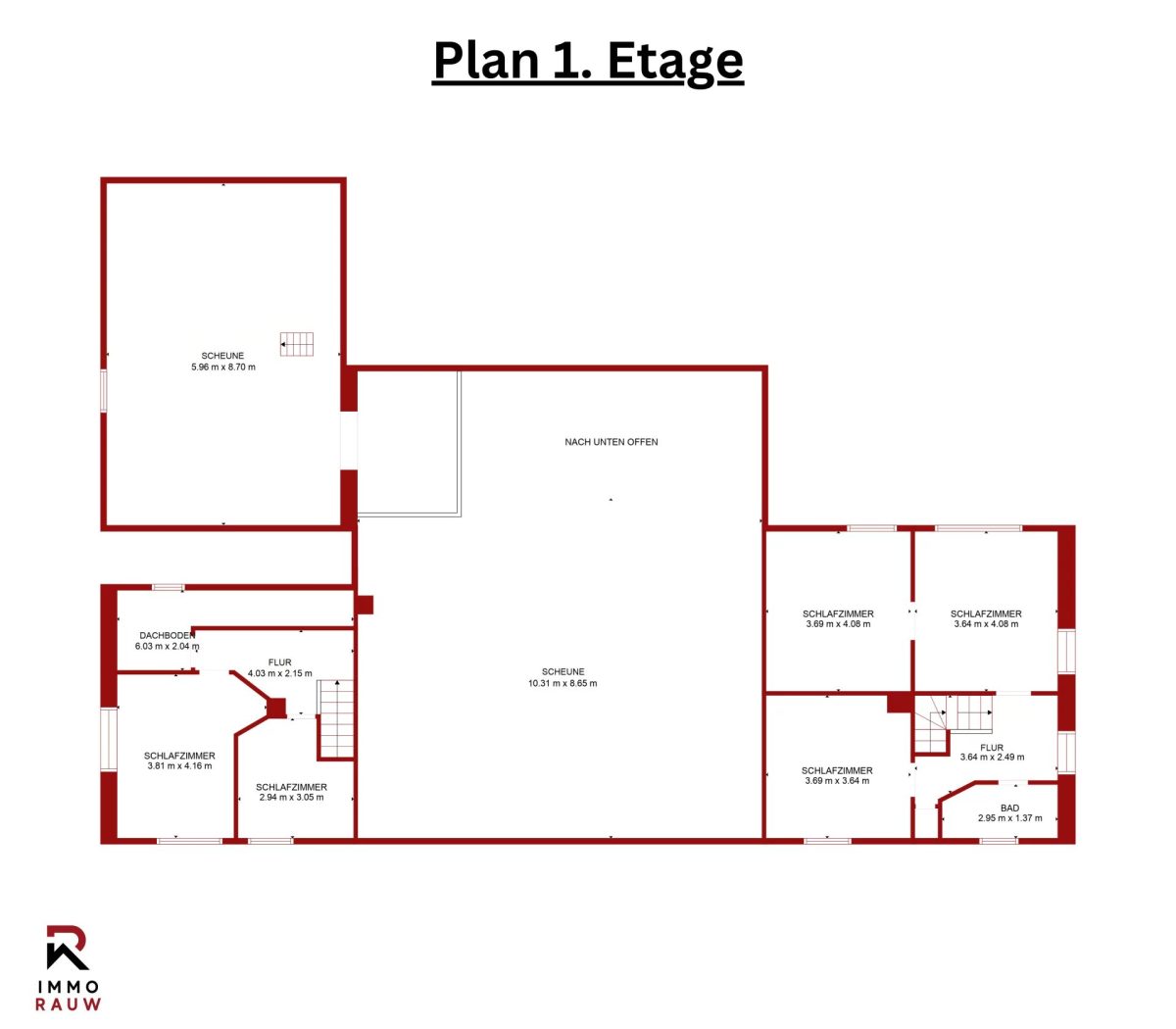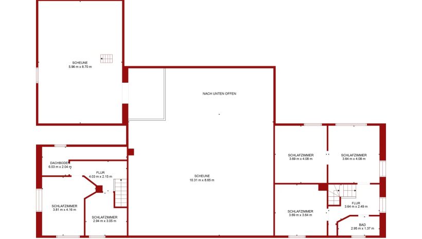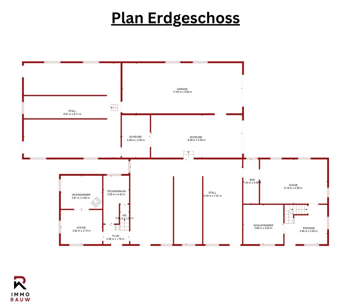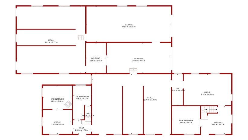 Das Haus bietet neben den bereits ausgebauten Wohnräumen zusätzliches Potenzial zur Erweiterung: Weitere Flächen wie ehemalige Scheunen lassen sich nach individuellen Vorstellungen gestalten und ausbauen. Ob zusätzlicher Wohnraum, Hobbybereich oder beruflich – hier stehen Ihnen viele Möglichkeiten offen.