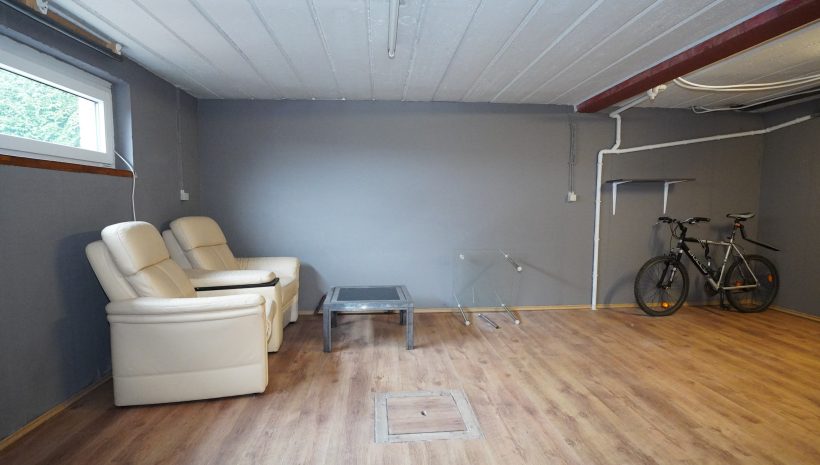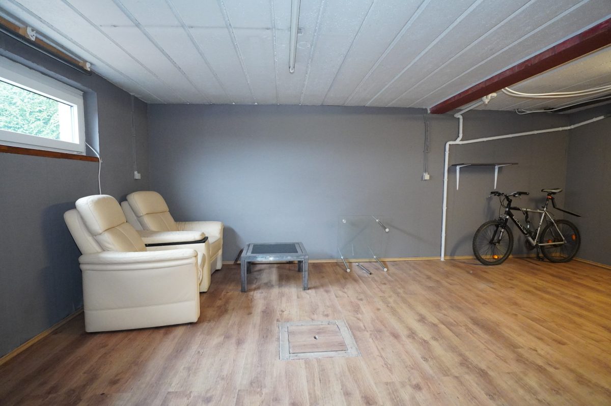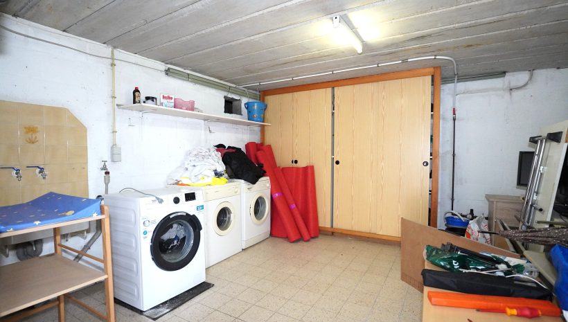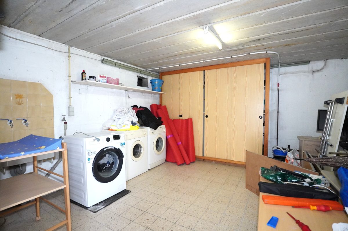 Das Untergeschoss besteht aus einem großen Lagerkeller, einem Heizungskeller, einer großen Garage und einem Hauswirtschaftsraum mit Anschluss für die Waschmaschine.