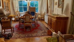 Dieses Haus besticht durch seine zeitlose Eleganz und bietet eine überdurchschnittlich grosse Wohn- und Nutzfläche. Außerdem ist die Immobilie voll unterkellert. Besonders reizvoll ist die Tatsache, dass das Objekt in einer ruhigen, wenig befahrenen Sackgasse liegt und somit keinen Durchgangsverkehr kennt. Ein schönes Grundstück rundet das Angebot ab. Auf dem Erdgeschoss gelangen wir durch die grosszügige Diele mit Gäste-WC und Garderobe in alle Räume, die zum täglichen Leben gebraucht werden, wie zum Beispiel Küche mit angrenzendem Abstellraum, Wohn- und Esszimmer mit Zugang zur Terrasse und Garten, Kaminzimmer sowie zwei Schlafzimmer und das Bad. Im Obergeschoss sind weitere zwei großflächige Zimmer sowie zahlreiche Stauräume, die als Speicher genutzt werden. Im Untergeschoss hat der Hausbesitzer eine Einliegerwohnung einrichten lassen, des Weiteren befinden sich dort ebenfalls große Räume, als da wären Archivraum, Büro, Heizkeller und eine Doppelgarage von cirka 10 auf 5 Meter.
